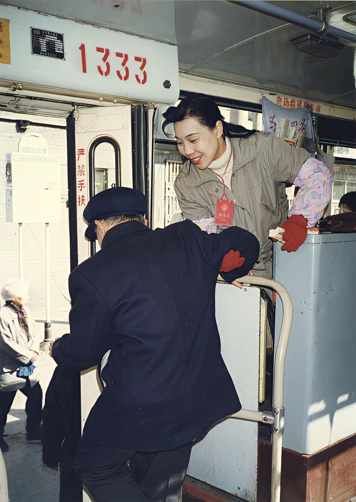 李素丽是北京公交的一名售票员,2000年被评为“全国劳动模范” 。在她担任售票员期间,老幼病残孕乘客最怕摔倒和磕磕碰碰,李素丽就主动搀扶他们上下车 。她还会根据乘客的不同需求,提供贴心服务,如为抱小孩的乘客准备小棉垫,给堵车时的乘客提供报纸、杂志等 。(照片是李素丽搀扶老人下车的场景)