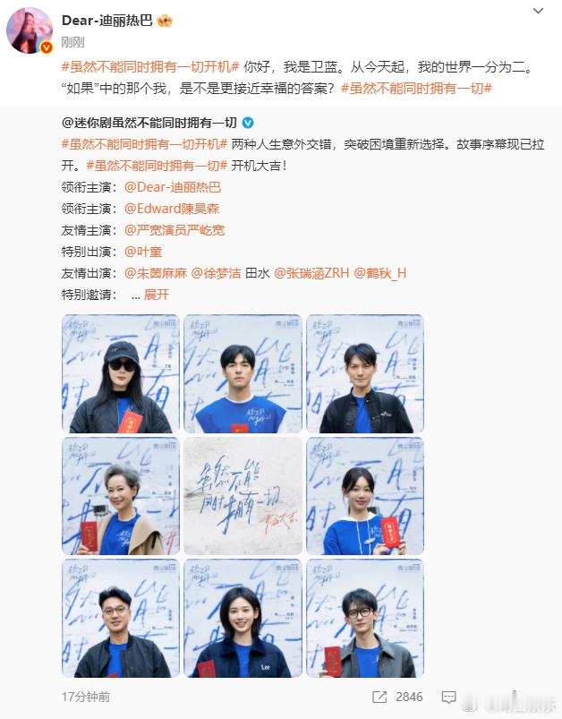 迪丽热巴说你好我是卫蓝 卫蓝你好!开机大吉!一切顺利[送花花]
