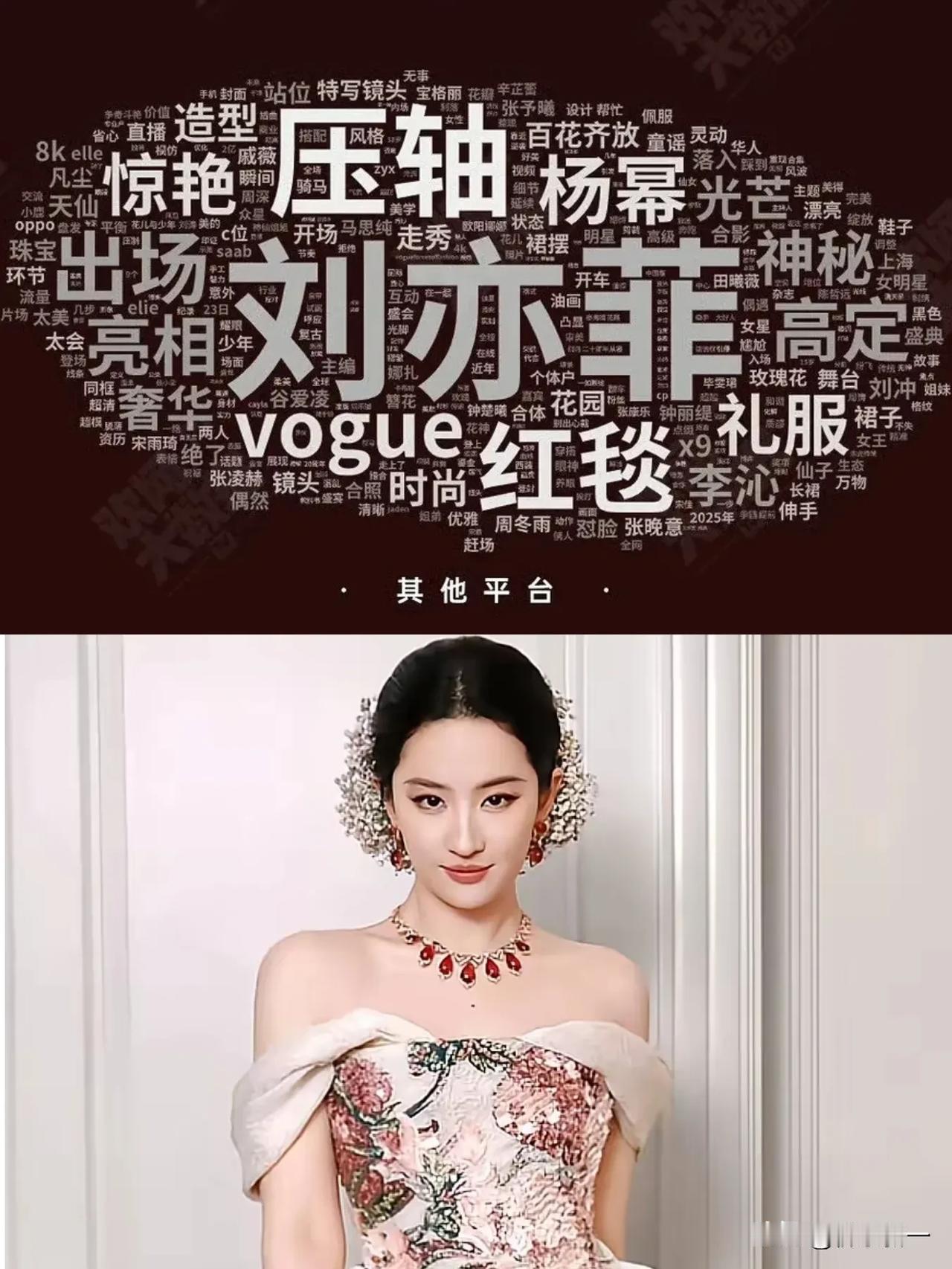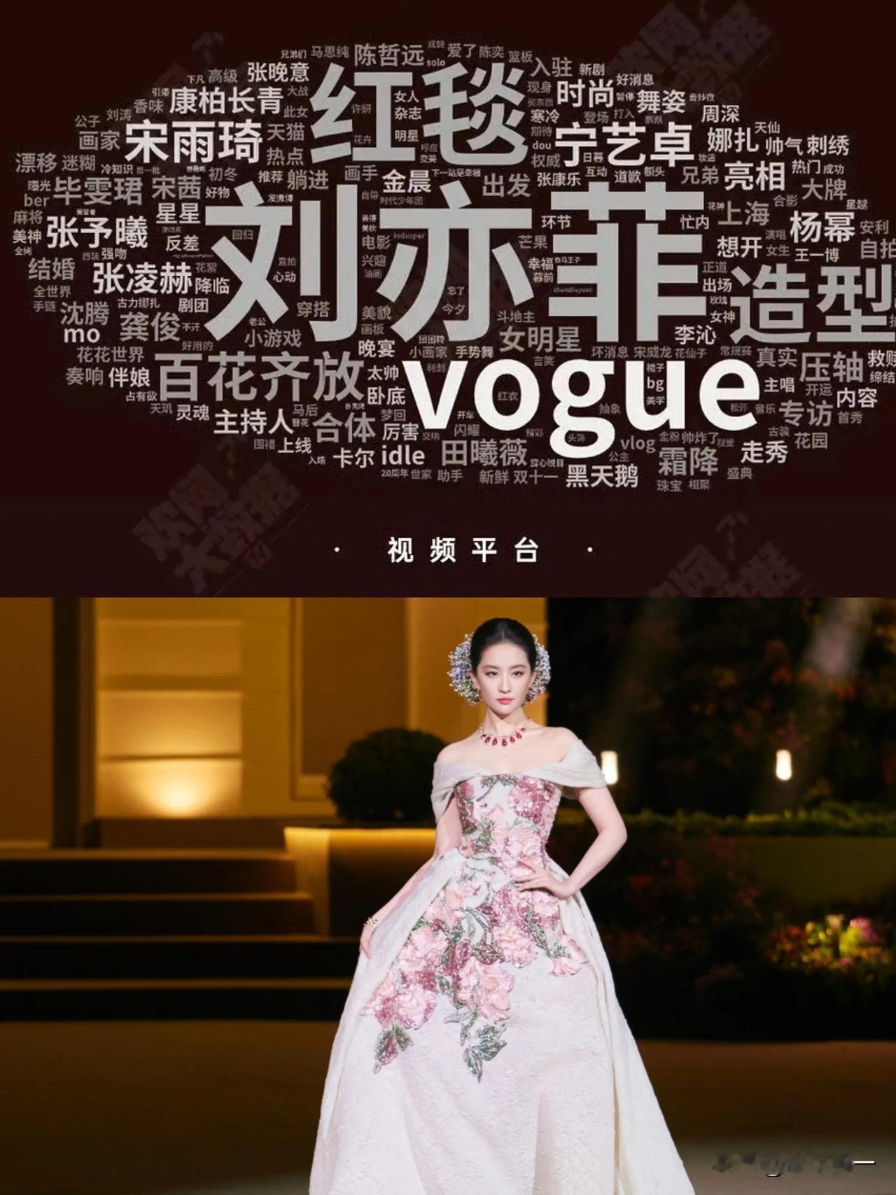 不怪刘冲死磕刘亦菲vogue盛典压轴 昨夜舆情热词一出硕大的刘亦菲全明白了 这还有其他人的位置吗,女娲炫技之作一出谁不爱啊 你可以讨厌刘亦菲,但你说她脸不行,压不住场,那真的是不尊重客观事实了 这姐也是完全演绎什么叫脸在江山在啊 头戴的满天星都让网友误认成了王冠 刘亦菲贵气二字说麻了啊 微指也是一骑绝尘登顶,也不怪刚参加完vogue,ELLE就坐不住了第二天第一条就是刘亦菲的活动祝福,前一晚还在内涵vogue,第二天就开薅菲姐羊毛了,也是馋上仙了[捂脸] 刘亦菲 vogue