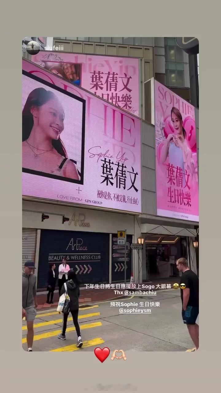 另外Sophie还上载一班粉丝集资给她买的户外大型电视屏幕及生日应援灯箱片段,令她非常感动,但都要等她跟GM享受完甜蜜之旅后,才能到场打卡。