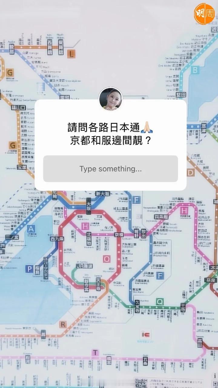 Sophie昨日(24日)在ig限时动态上载最爱的玉桂狗挂饰夹住登机证放闪,今日再在网上上载坐日本铁路片段,并问:"请问各路日本通,京都和服边间靓?"