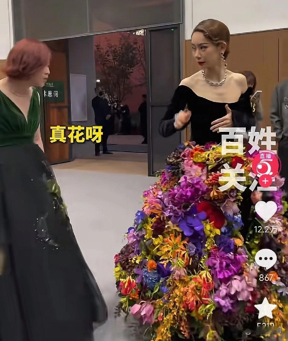 VOGUE盛典上戚薇的裙子居然是真花 杜华欧阳娜娜田曦薇都驻足欣赏 戚薇逢人就送花祝大家“有钱花” 真美,戚薇穿这身不得把李承铉迷得回房间啊[憨笑][憨笑][憨笑]