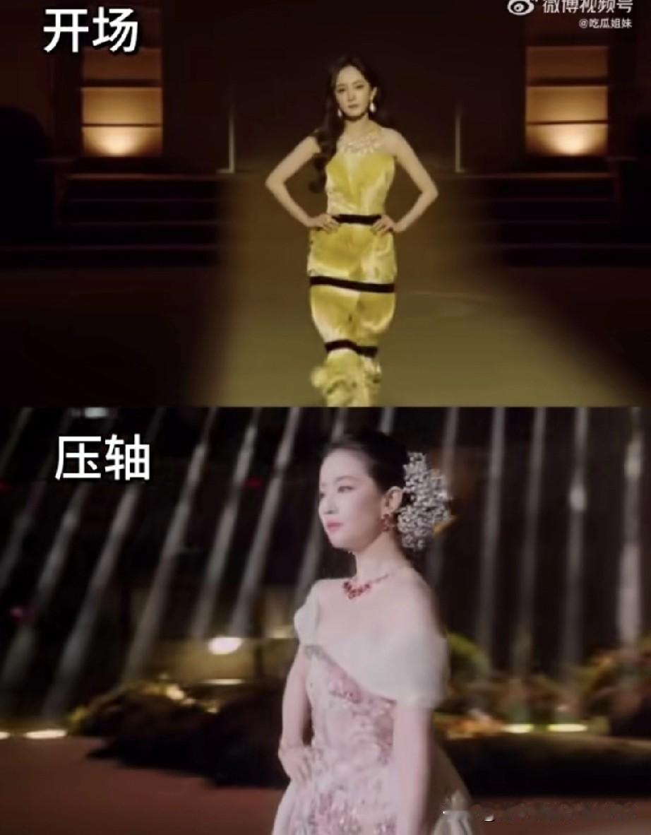 一个好似夜场老妈子,一个宛如童话公主。一个行色匆匆赶时间,一个举止优雅又从容。一个小家碧玉,一个大家闺秀。单看衣着,杨幂就已落了下风,若不是她身材好,怕是都难以走动。刘亦菲的着装更契合这种场合氛围! 杨幂这条裙子实在难看,尤其是裙摆部分,毫无高级感可言,与刘亦菲相比差距甚远。先不说容貌美丑,单论穿衣打扮,二人就不在一个层次。杨幂这条裙子简直糟糕透顶,好似缠了三条黑色胶带,连步子都迈不开。