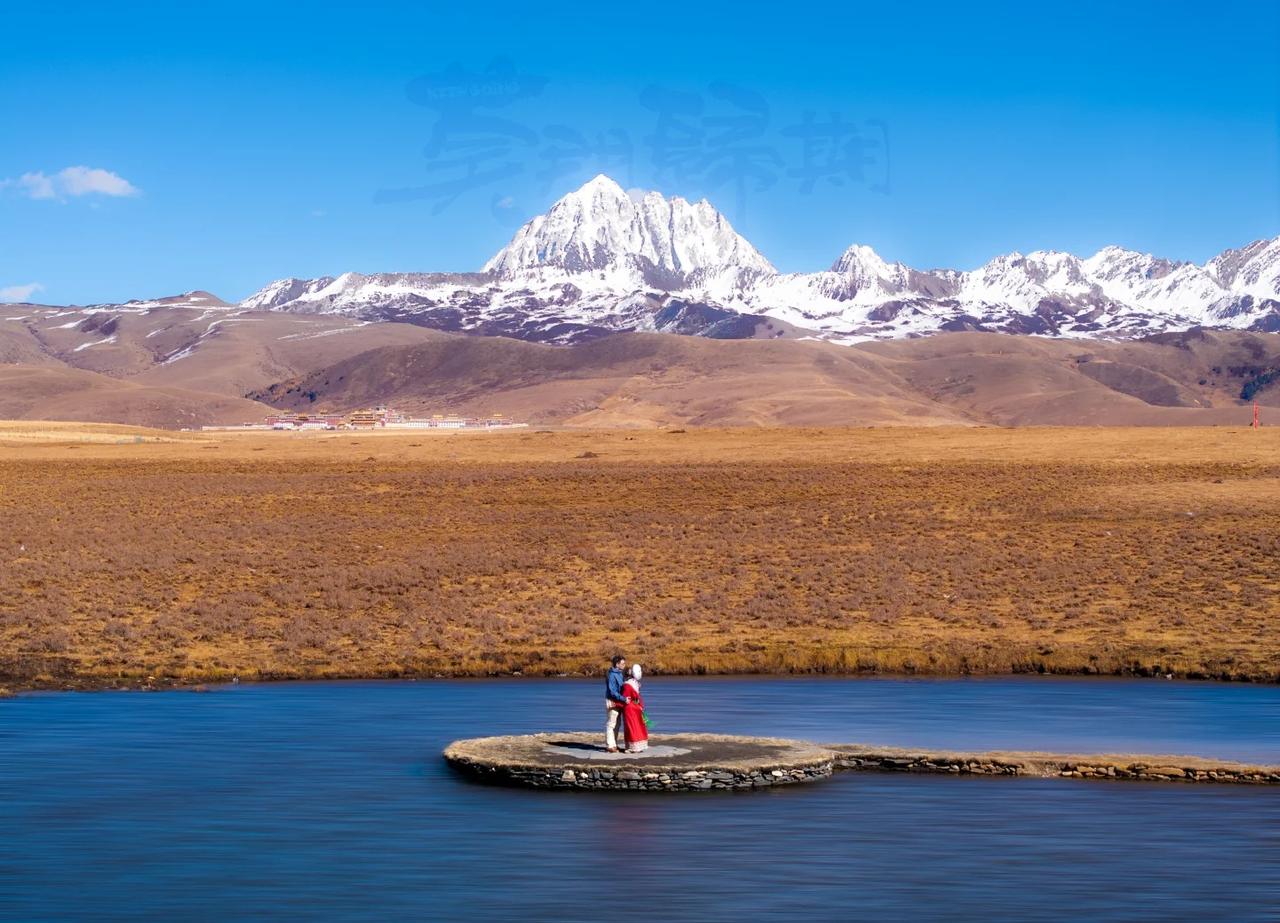 川西真的很出片 塔公草原往木雅大寺走的路上会途径这个小湖泊,我把它叫做雅拉之心,就在国道旁边,超级出片,在小湖泊边上拍照不收费,走到湖心的这个石台拍照是10元/人,推荐无人机拍摄,能很好的拍到雪山🏔️湖泊和草原🐎,照片左边雪山脚下的寺庙就是木雅大寺,个人觉得是拍摄雅拉雪山元素最丰富的一个机位。雅拉雪山