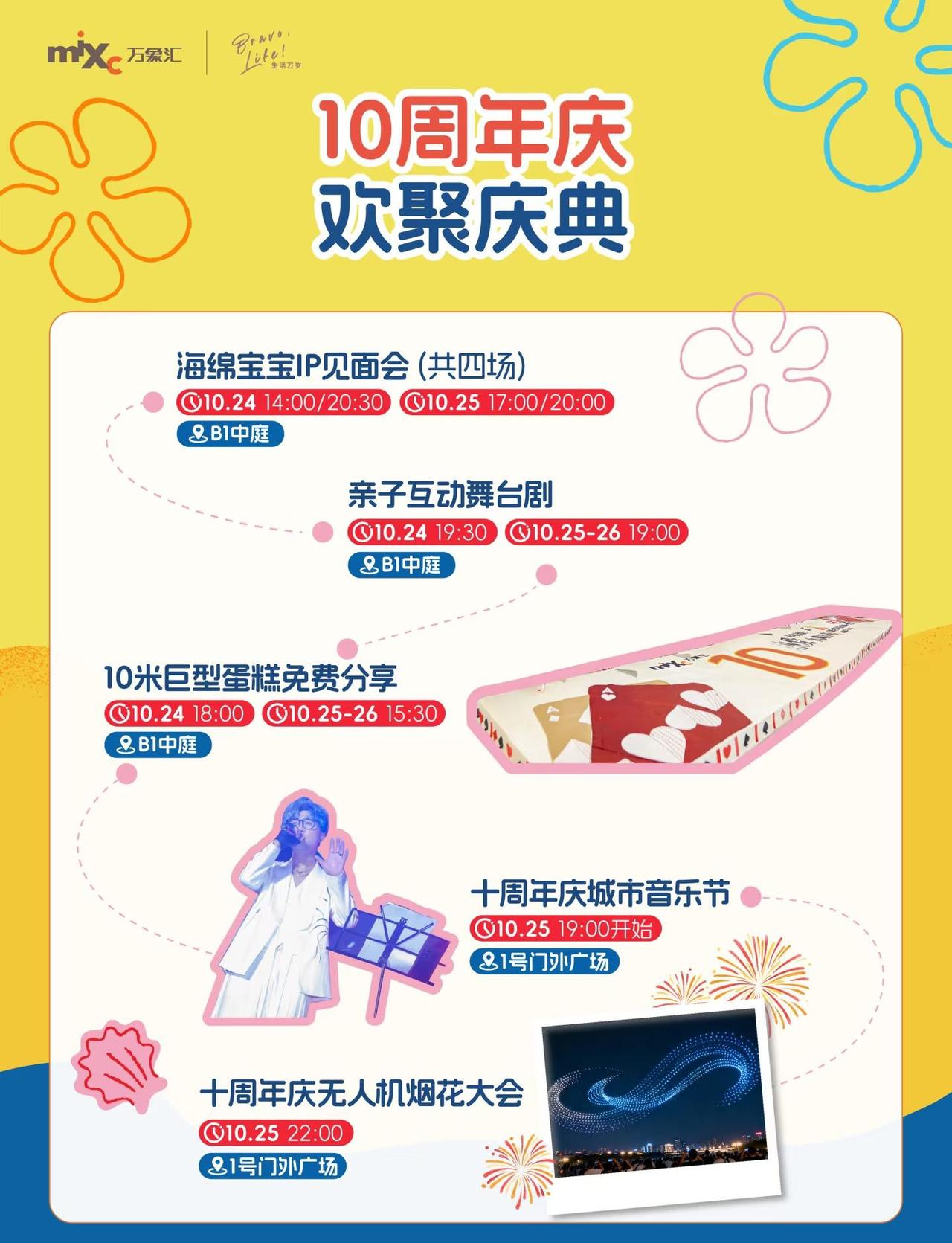 报告‼️万象汇十周年庆舞台搭建进度🔥 📣周年庆舞台正在火速搭建中❗活动清单先码住👇🏻 ✅海绵宝宝主题庆生见面会 ⏰10.24-25 📍B1中庭 ✅无人机烟花+城市音乐节 ⏰10.25 📍1号门外广场 ✅10米巨型蛋糕连续三天mi