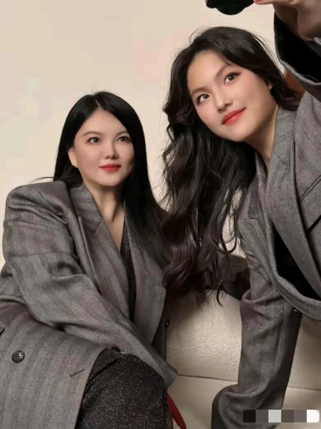 李湘与王诗龄的亲子装:镜头中的李湘胖瘦适宜,发如绸缎,眉若远黛,眼如秋水,琼鼻红唇,霞姿月韵;一头波浪发披肩的王诗龄明眸善睐,玉颜如练,粉面含春,举手投足间都流露着丰澜的美感,母女俩的合照真是餍心悦目呀!