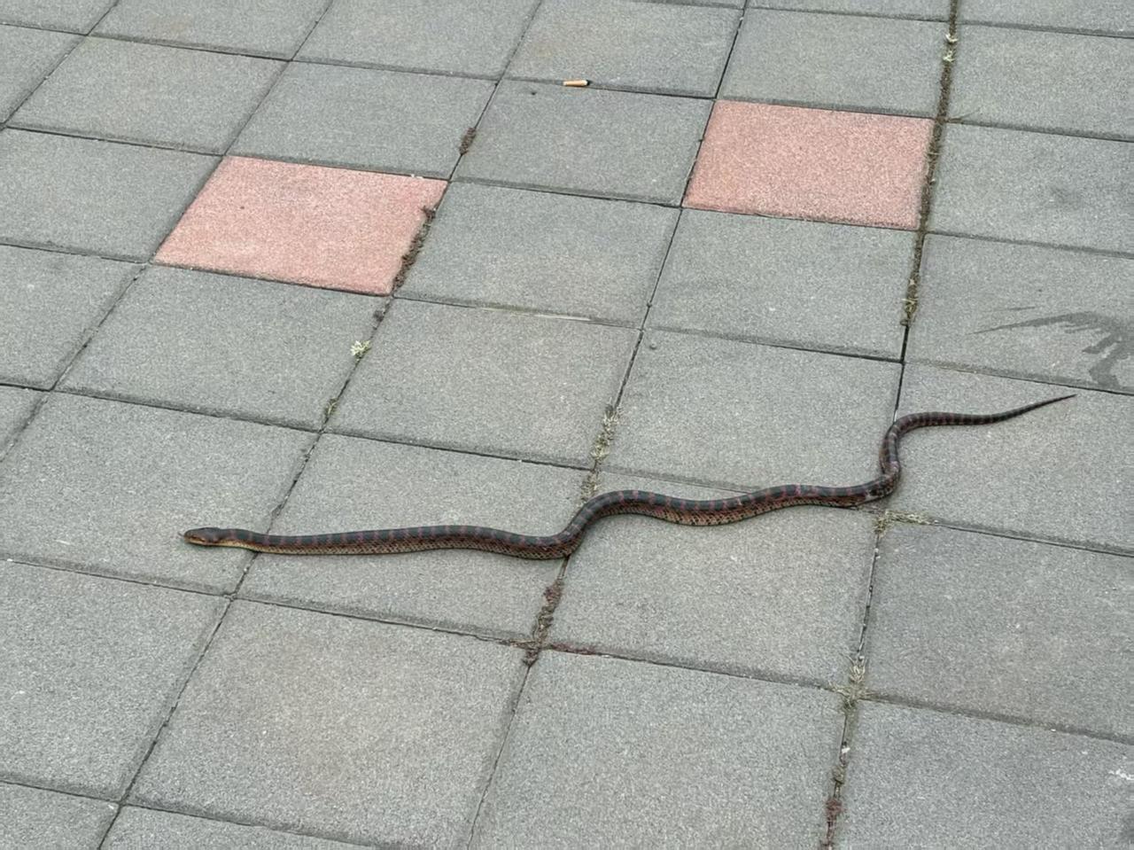 在大连天这么冷, 怎么路上还发现了蛇, 它还在蠕动。山路上有蛇 会走路的蛇 小区