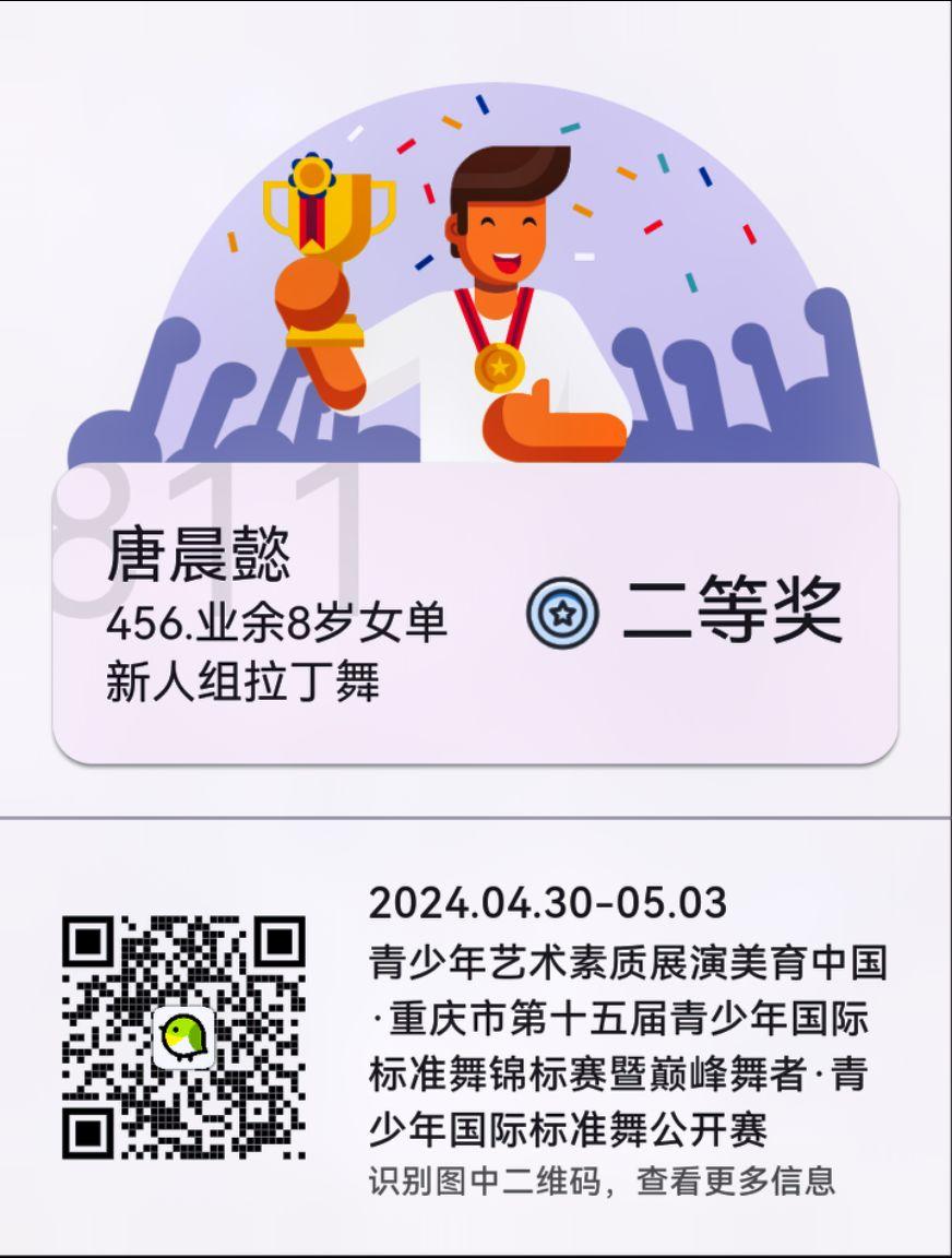 💕每一份荣誉,都是宝贝努力的见证💕 💖💖先努力优秀,再大方拥有💖💖拉丁舞小女孩 悄悄拔尖 台上一分钟台下十年功 唐晨懿小朋友第一次参加比赛,荣获二等奖,着实令人骄傲自豪