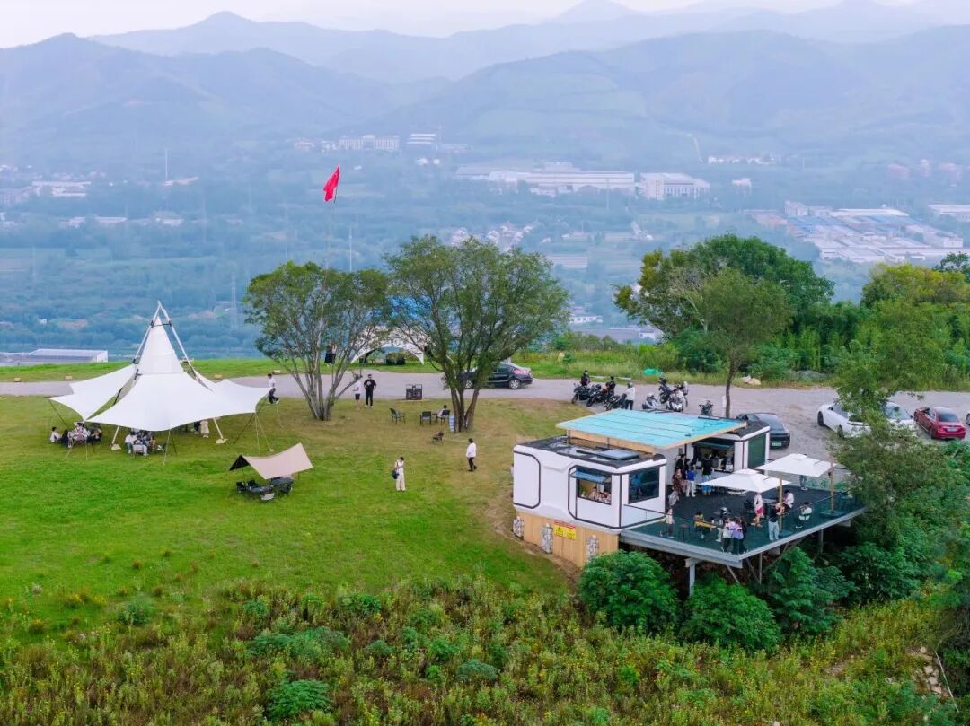 登山道的升级,不仅让一线天更具吸引力,更带动乡村旅游新业态多点开花。站在砺山山顶,南望翠绿群山,北眺云湖碧波,9月底开业的“山顶见咖啡”便坐落于此。国庆中秋假期,这家宜兴少见的山顶咖啡馆日均接待游客三四百人,吸引着周边地区的骑行、露营爱好者专程打卡。“家乡的美景让我坚定了返乡做文旅的决心。”店主张轶博是土生土长的太华人,此前在宜兴城区从事汽车贸易工作,凭借对露营咖啡的热爱,他租下这片曾是废弃煤矿的山地,打造出兼具观景与休闲功能的网红打卡点,还吸纳了5位周边乡镇年轻人就业。
