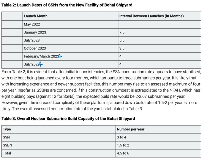 东大已连续三年每年下水3艘SSN,十五五将继续加速。图三的两座总装厂房共有10条轨道、20个建造工位。未来五年将至少每年下水4艘SSN,这还不算新型SSBN(就这还没用到新厂区极限产能的一半)。