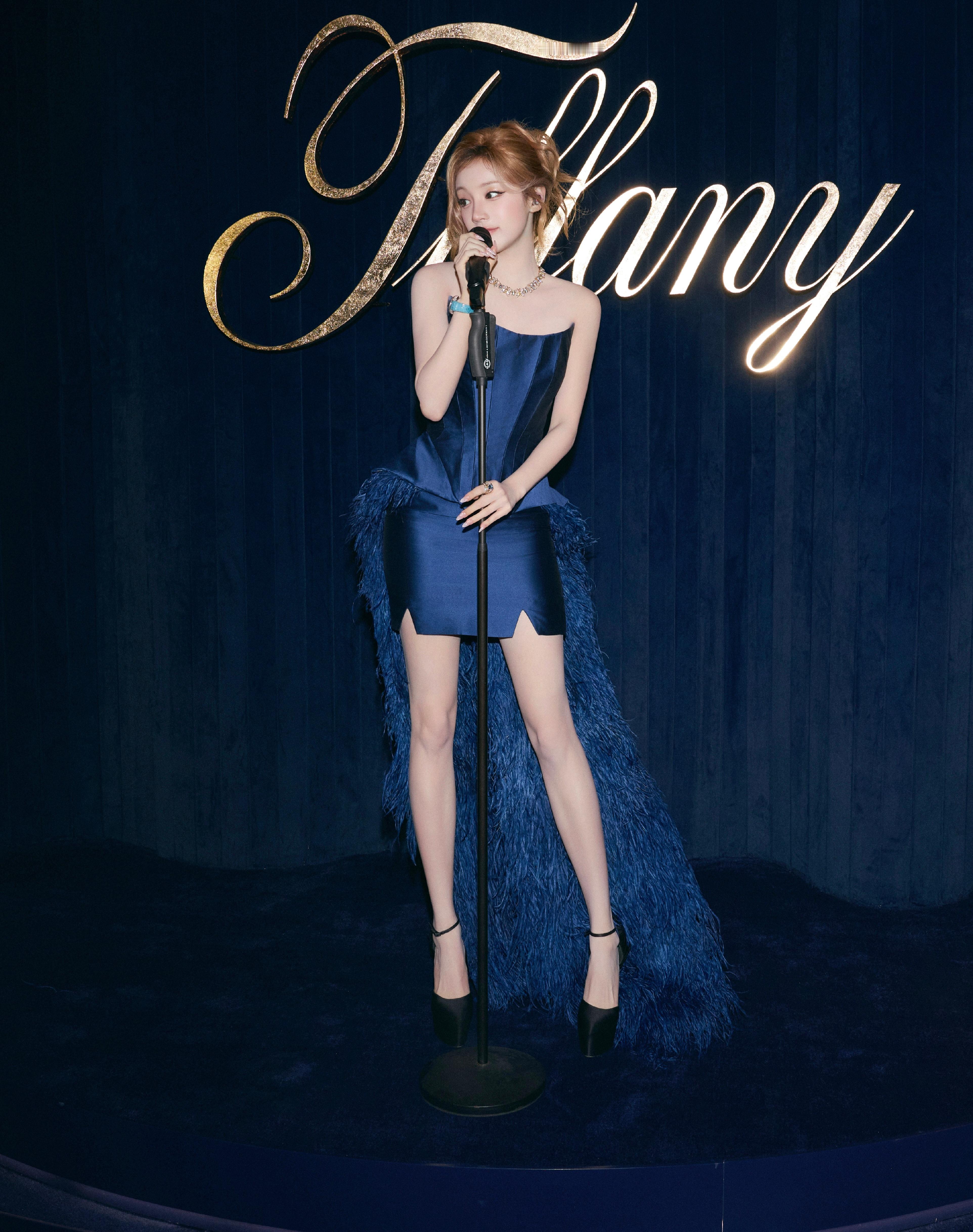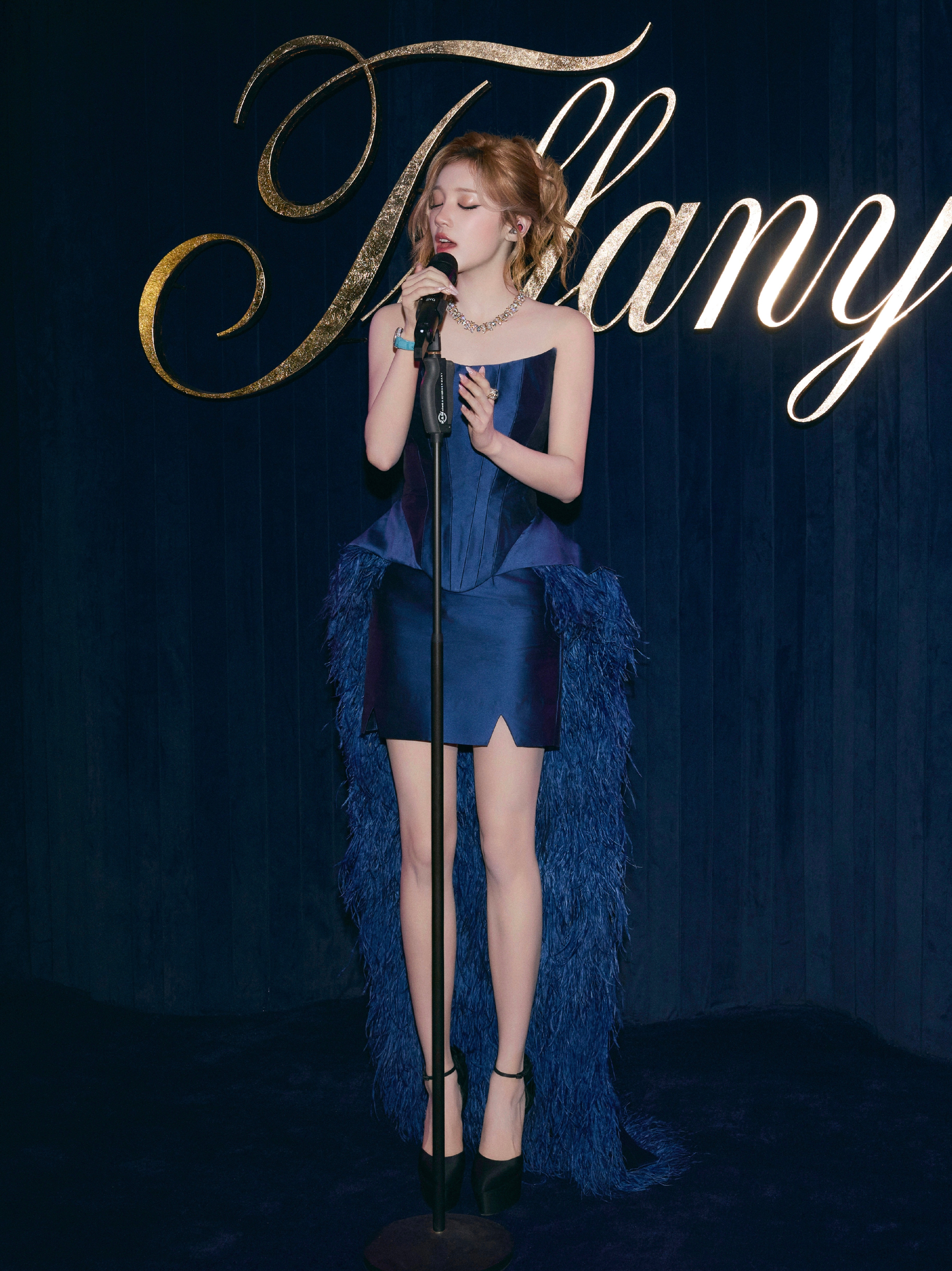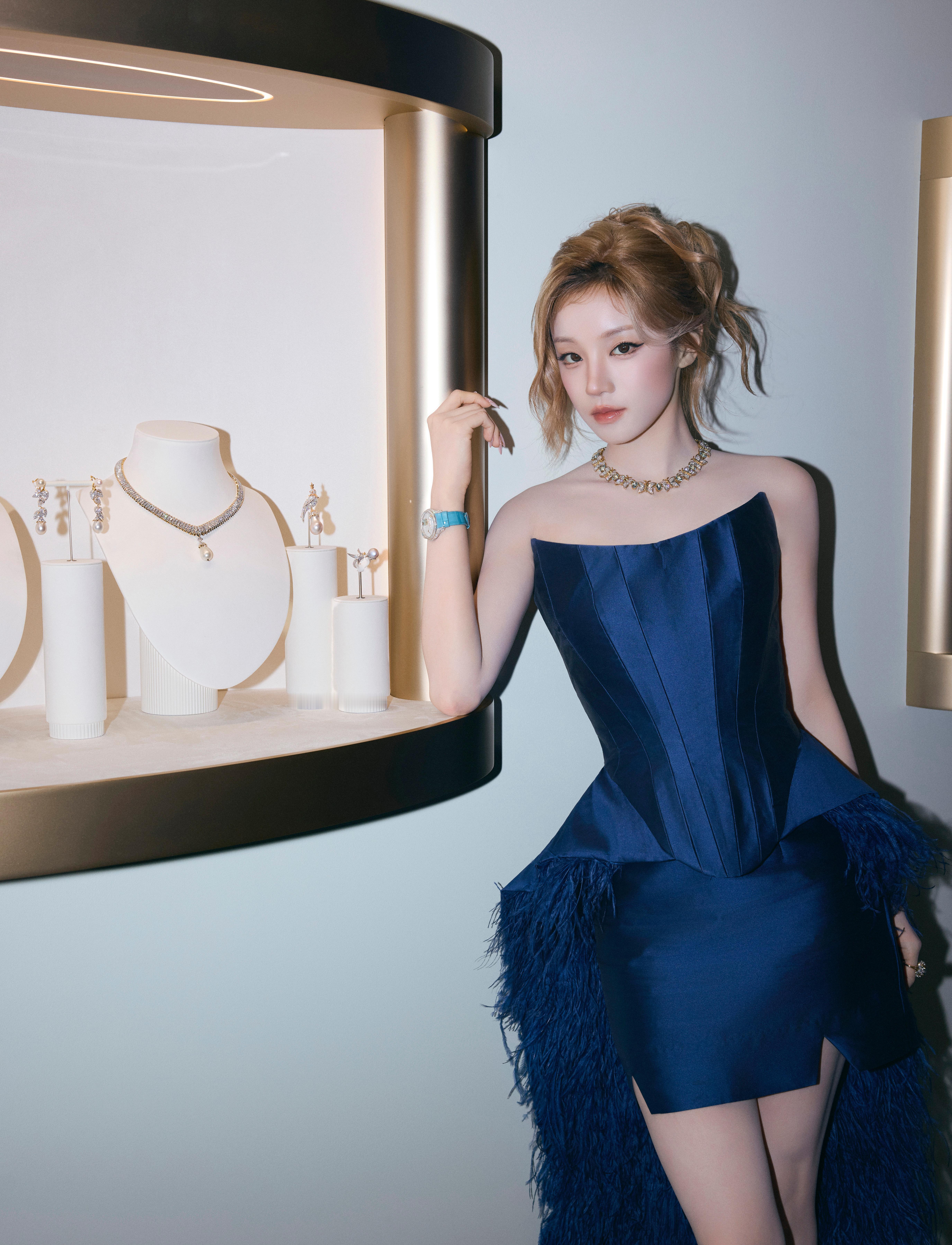 宋雨琦 深海蓝调裁成裙,羽毛曳地似潮汐轻吻,在鎏金与柔光间,把夜色唱成专属韵律。宋雨琦蓝色拖尾长裙