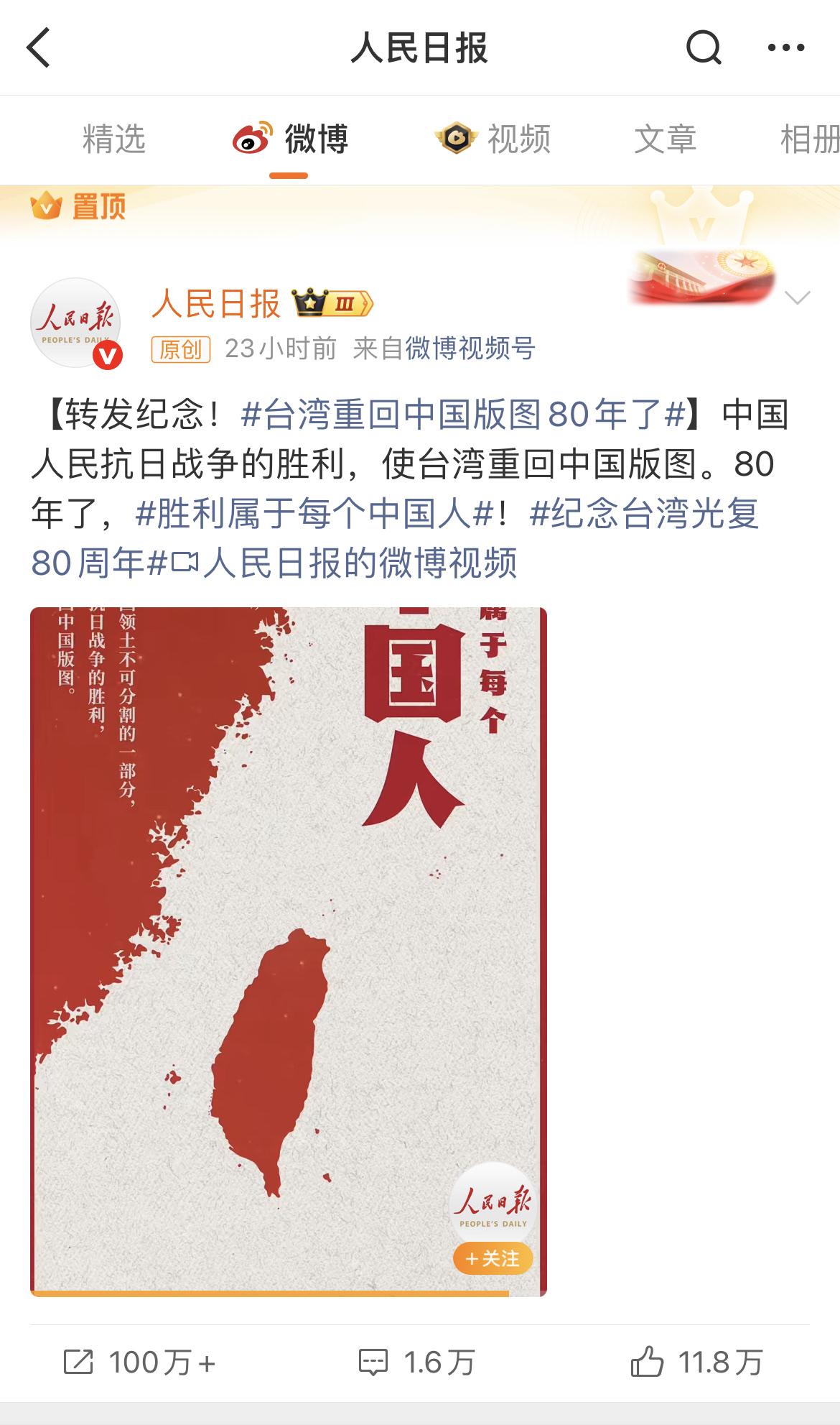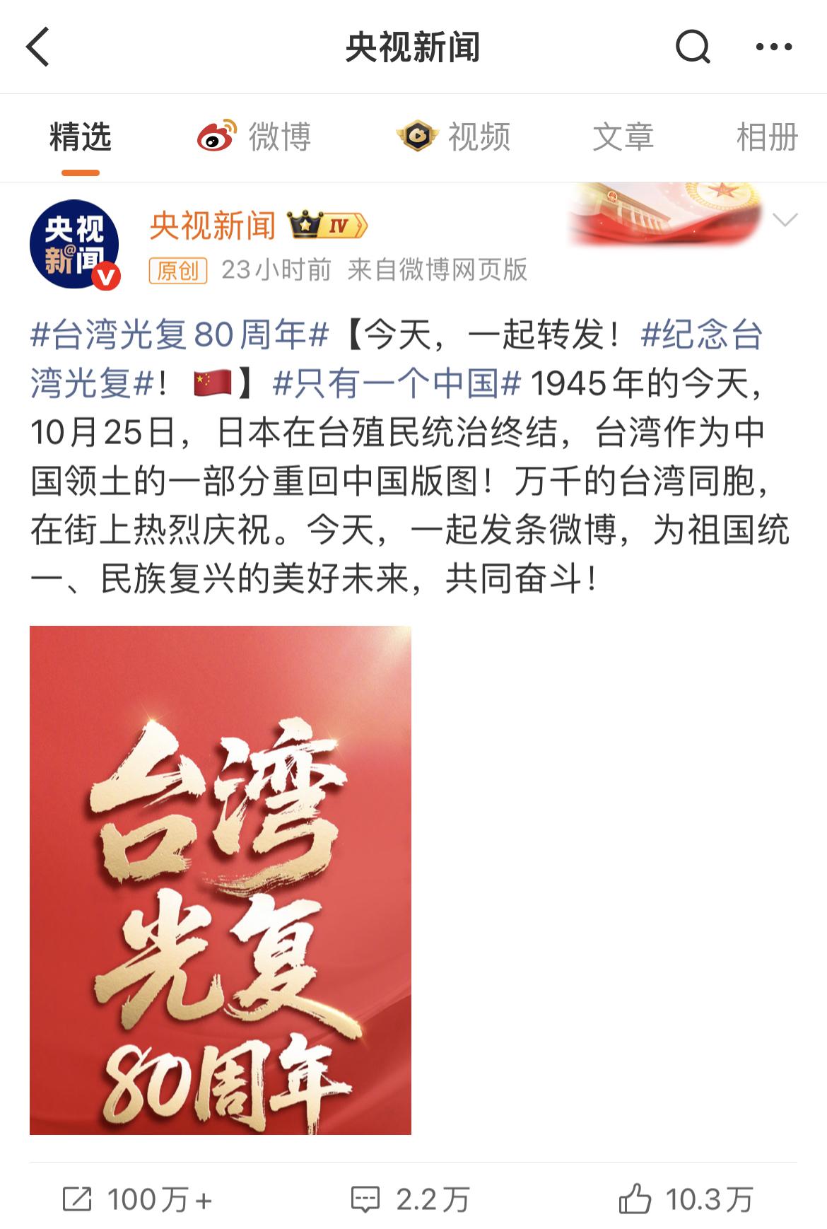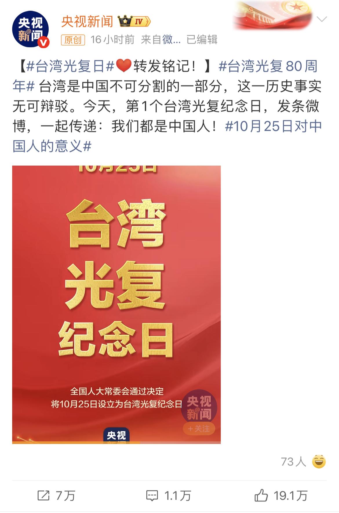 今天是台湾光复80周年,也是我国第一个台湾光复纪念日[酷拽]