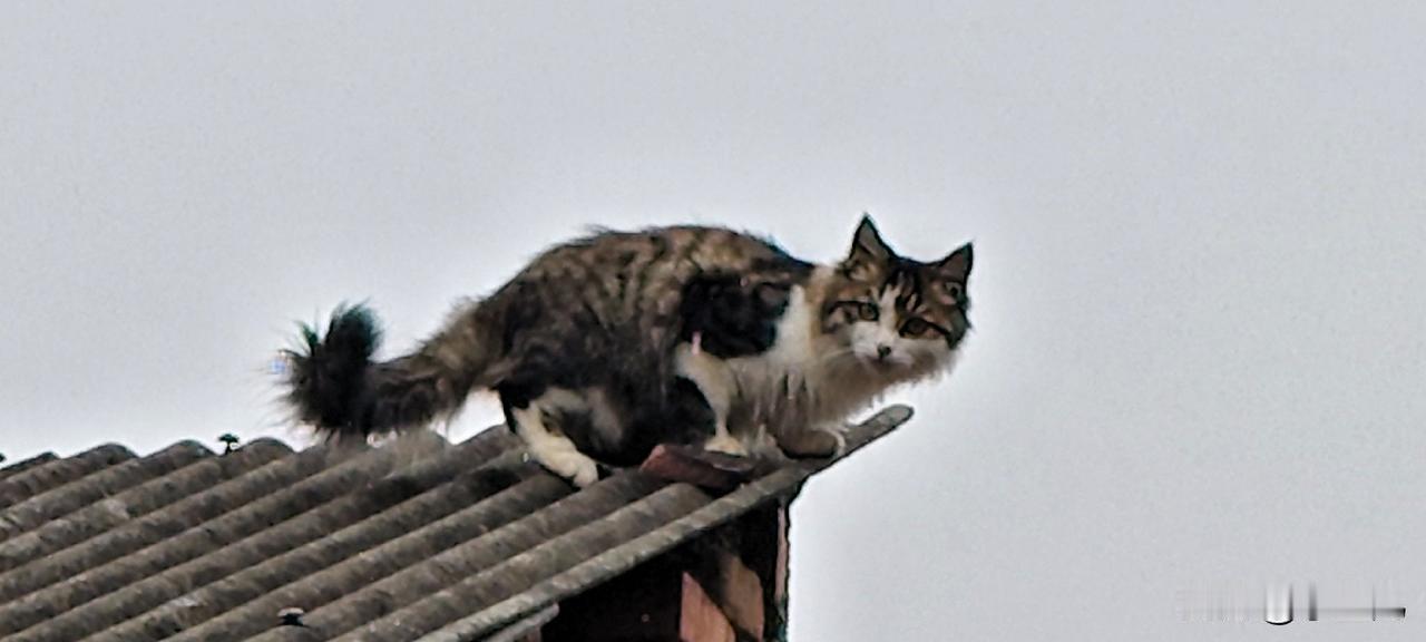 屋顶“猫司令”,专治不开心 你瞧这屋顶上的猫,毛绒绒的跟个小绒球似的,往那瓦片上一趴,活脱脱就是个“屋顶霸主”。 它那花色跟调色盘泼过似的,棕的、黑的、白的搅和在一块儿,却一点不杂乱。大尾巴一甩一甩的,跟个小掸子似的,警惕地瞅着四周,仿佛在巡视自己的“江山”。 也不知道它在瞅啥,是隔壁院的小鸟,还是巷子里窜过的老鼠?就这么蹲在屋顶上,把天当背景板,把屋顶当舞台,活成了自己的主角。 农村的猫就是这么随性,上房揭瓦是日常操作,跟人耍亲近也毫不怯场。有它在,小院都多了几分生气,看它这模样,谁能不乐呵呢? 宝儿,你家的猫咪也是这样的淘气吗? 评论区讨论一下呗