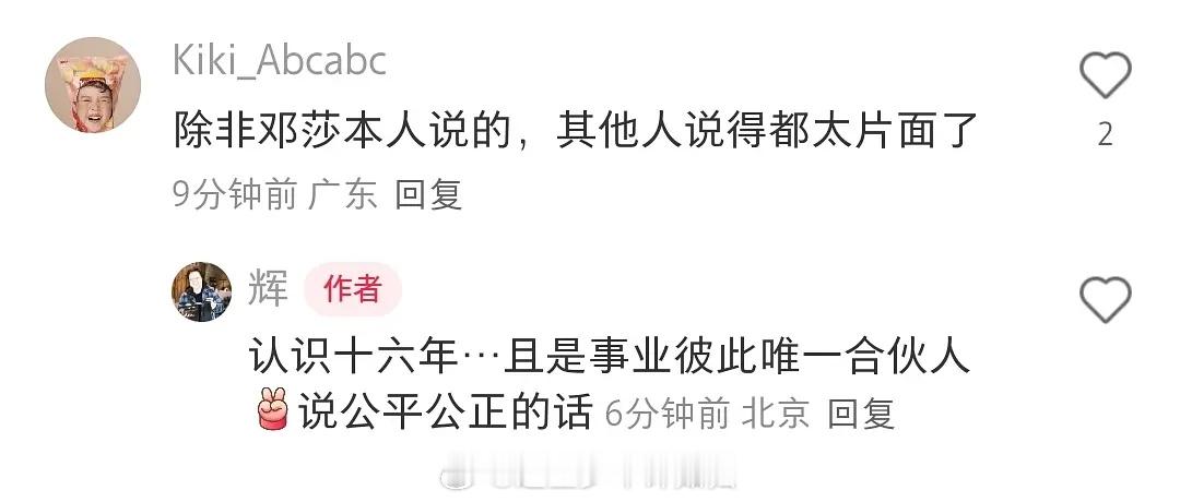 于是博主回复网友:和邓莎认识 16 年,且是唯一的事业合伙人…