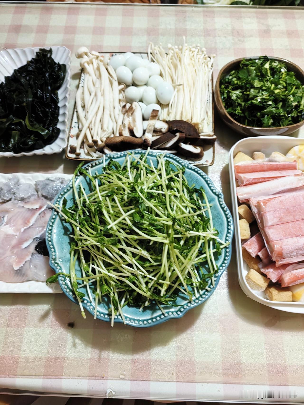 又是美好的一天! 又到了星期天, 女儿从盒马买了菜, 周日全家吃火锅喽。 女儿又买菜、又洗菜, 准备的很齐全, 全家人团团圆圆的, 真的是最幸福的事。 每天知足常乐, 简简单单的过日子, 这样就很知足了, 食材已经全部准备好。 马上就上锅了开涮啦, 从心里感到有女儿真好!
