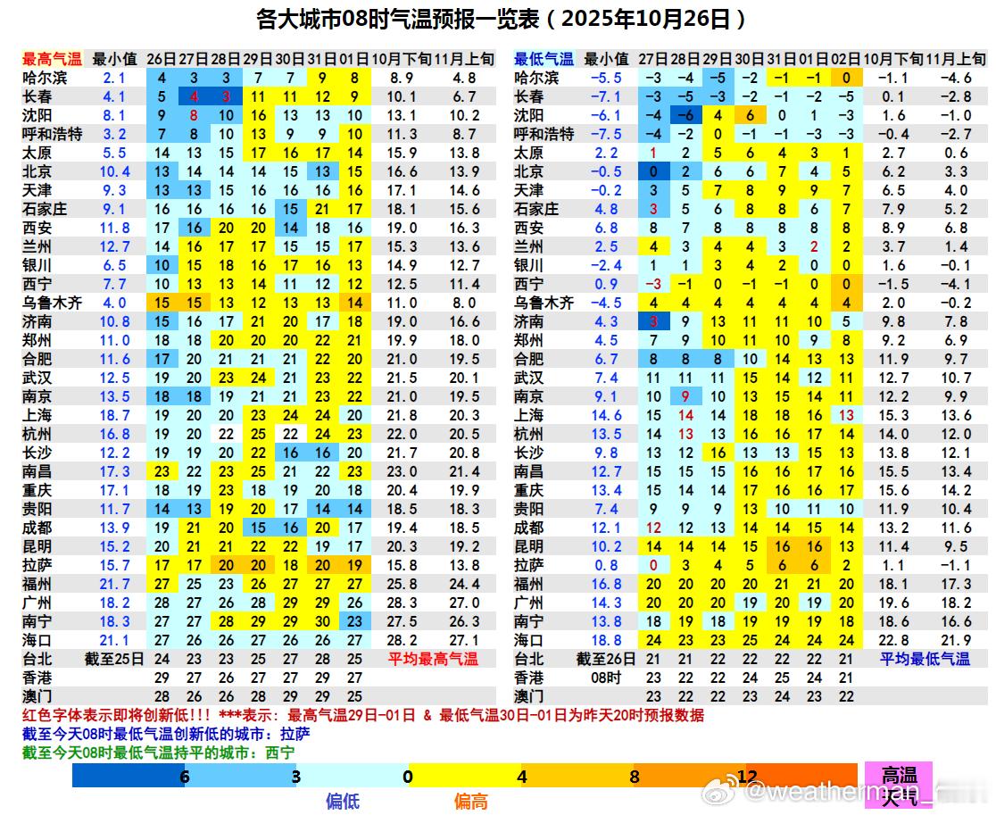 【气温创新低】今晨拉萨最低0.8℃,创立秋后气温新低。明晨拉萨0℃可能再创新低。此外明晨西宁将是立秋后首次跌破0℃,预计最低零下3℃。明晨太原1℃、石家庄3℃、济南3℃也可能创出立秋后气温新低。