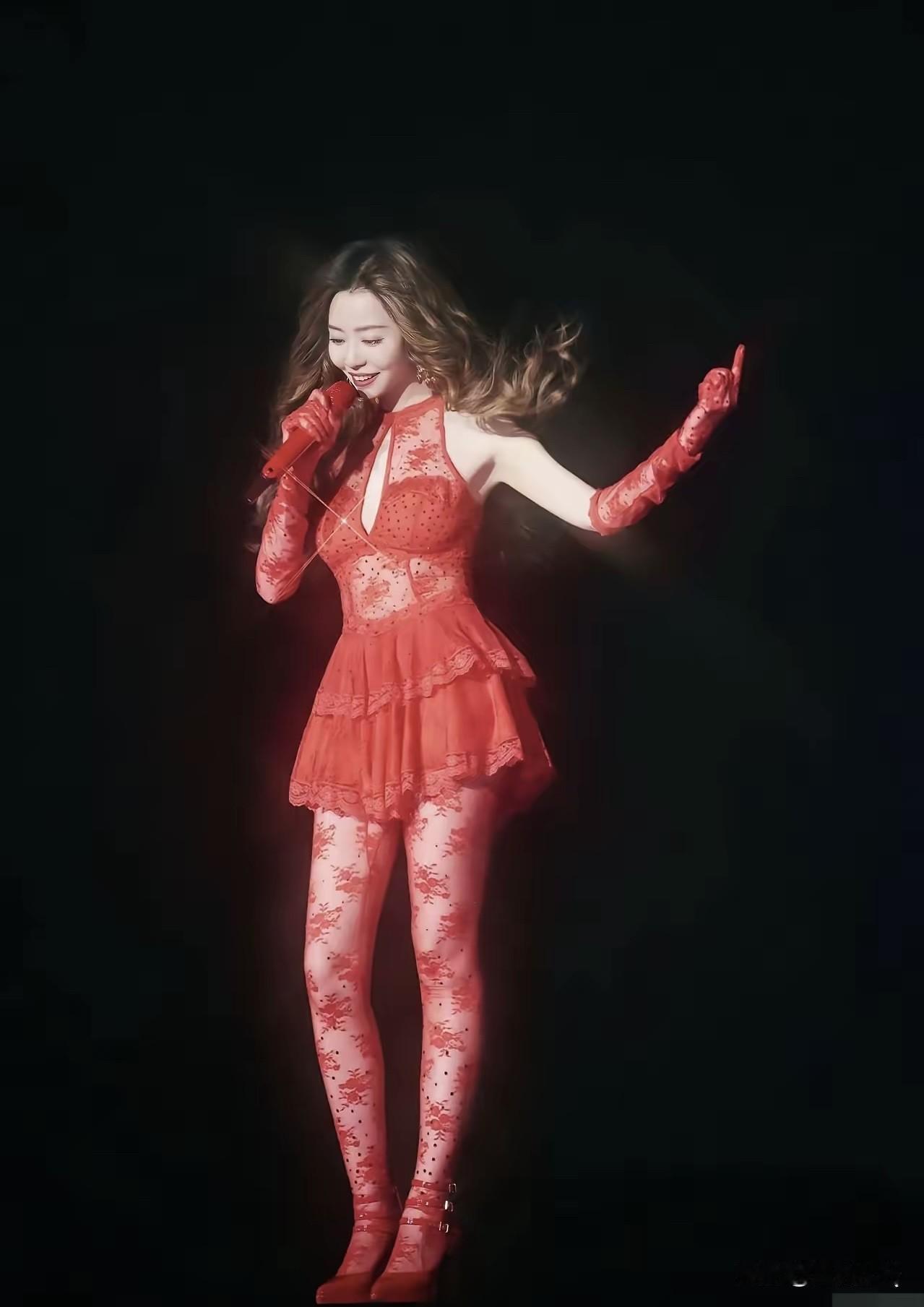 张靓颖演唱会造型越来越放飞自我了,红色蕾丝也太具诱惑性了,让男粉丝怎能不想入非非呢……