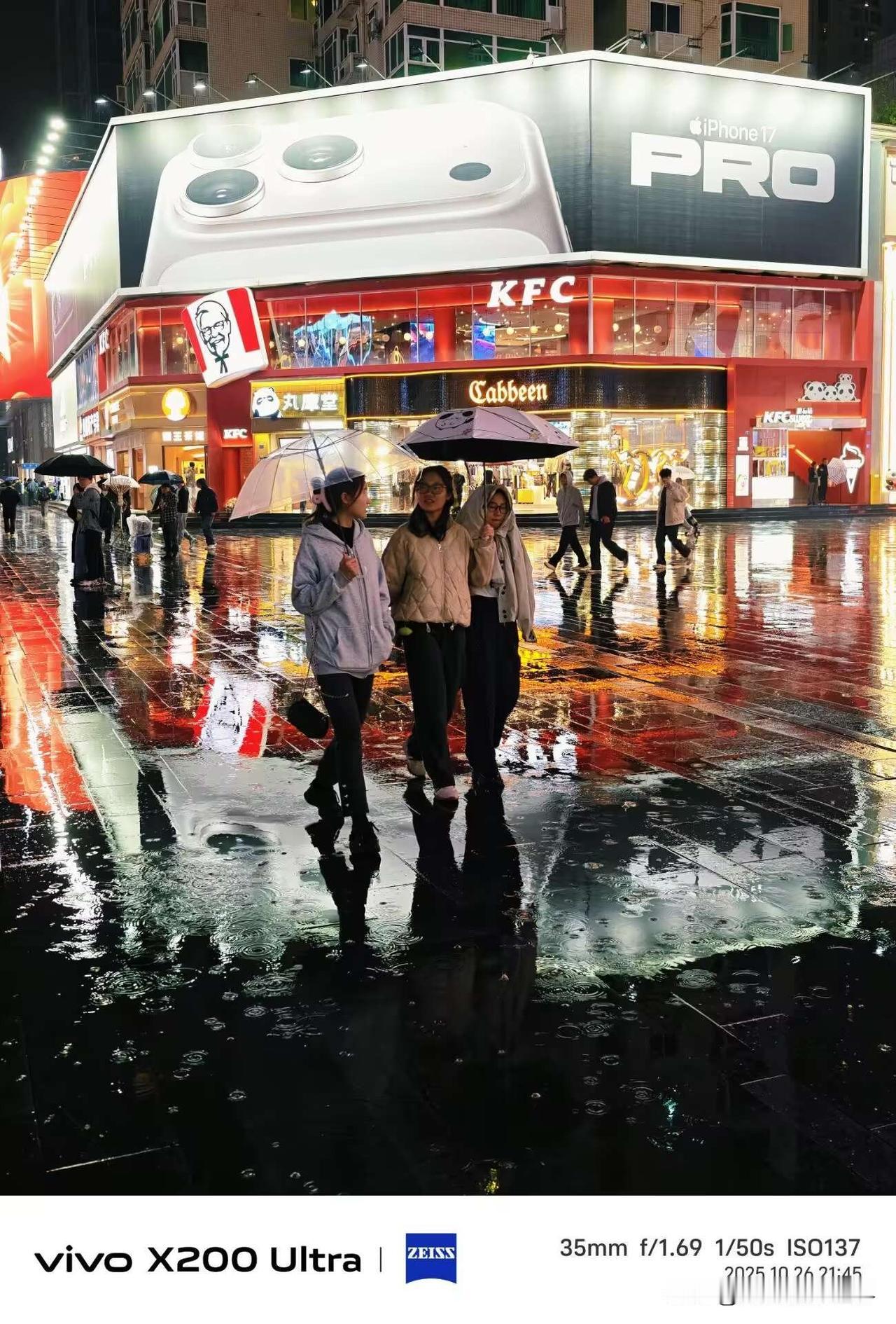 10月26日深夜,四川省成都市,春熙路,下着雨,冷风吹过,真的好冷啊!今天晚上,我的运气真的太好了,正巧碰上春熙路下雨,雨中的春熙路真的好漂亮,不输重庆解放碑,可以媲美重庆轻轨二号线的较场口地铁站之较场口夜市的雨夜! 我很开心也很兴奋,今天晚上,川西应该在飘雪吧? 明天一早,我们要去毕棚沟看雪山和金秋,应该会有很好的天气。
