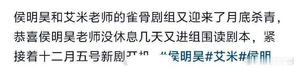 所以“影视寒冬不寒”“无缝进组”算个P,侯明昊曾舜晞丞磊这些不知道无缝进组多少了[允悲]还有之前的桐姐刘宇宁许so好多好多[捂嘴哭]