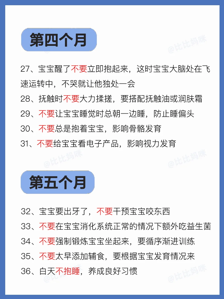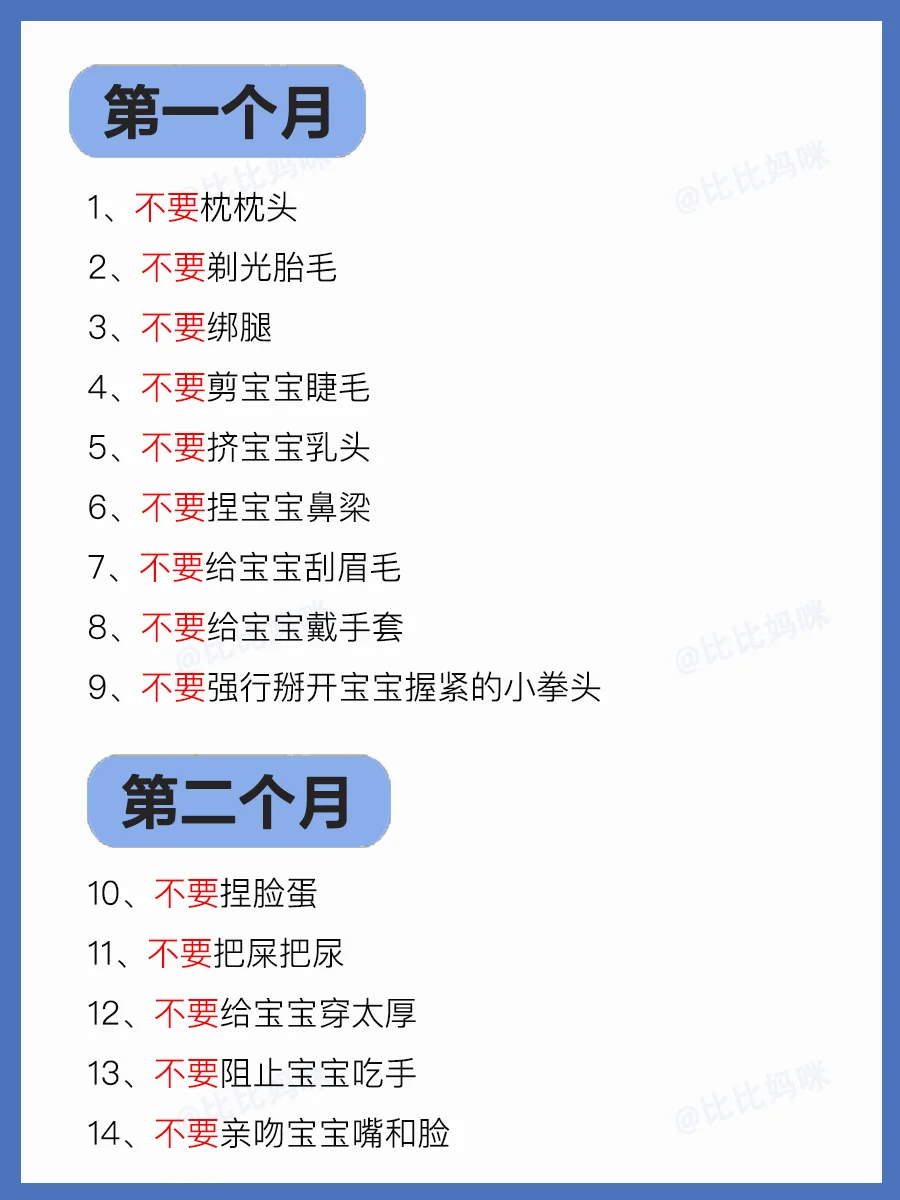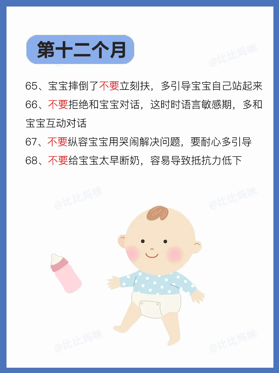 宝宝出生的第一年,很多新手爸妈忙的不知所措,今天整理了一些带娃注意事项和禁忌,希望能够帮助到新手爸妈们,特别是家里老人带娃的,记得转发给她,一起科学育儿