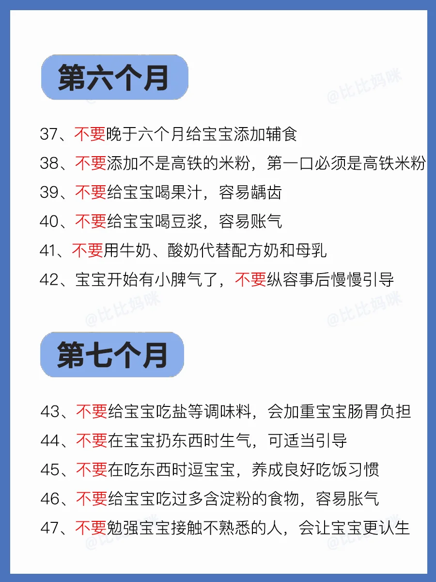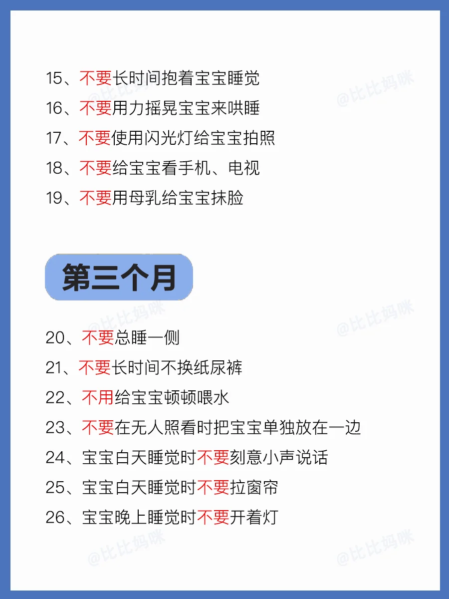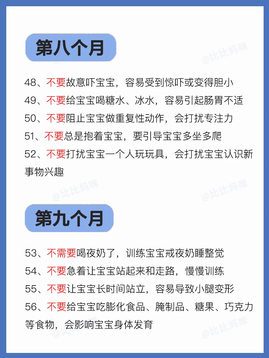 宝宝出生的第一年,很多新手爸妈忙的不知所措,今天整理了一些带娃注意事项和禁忌,希望能够帮助到新手爸妈们,特别是家里老人带娃的,记得转发给她,一起科学育儿