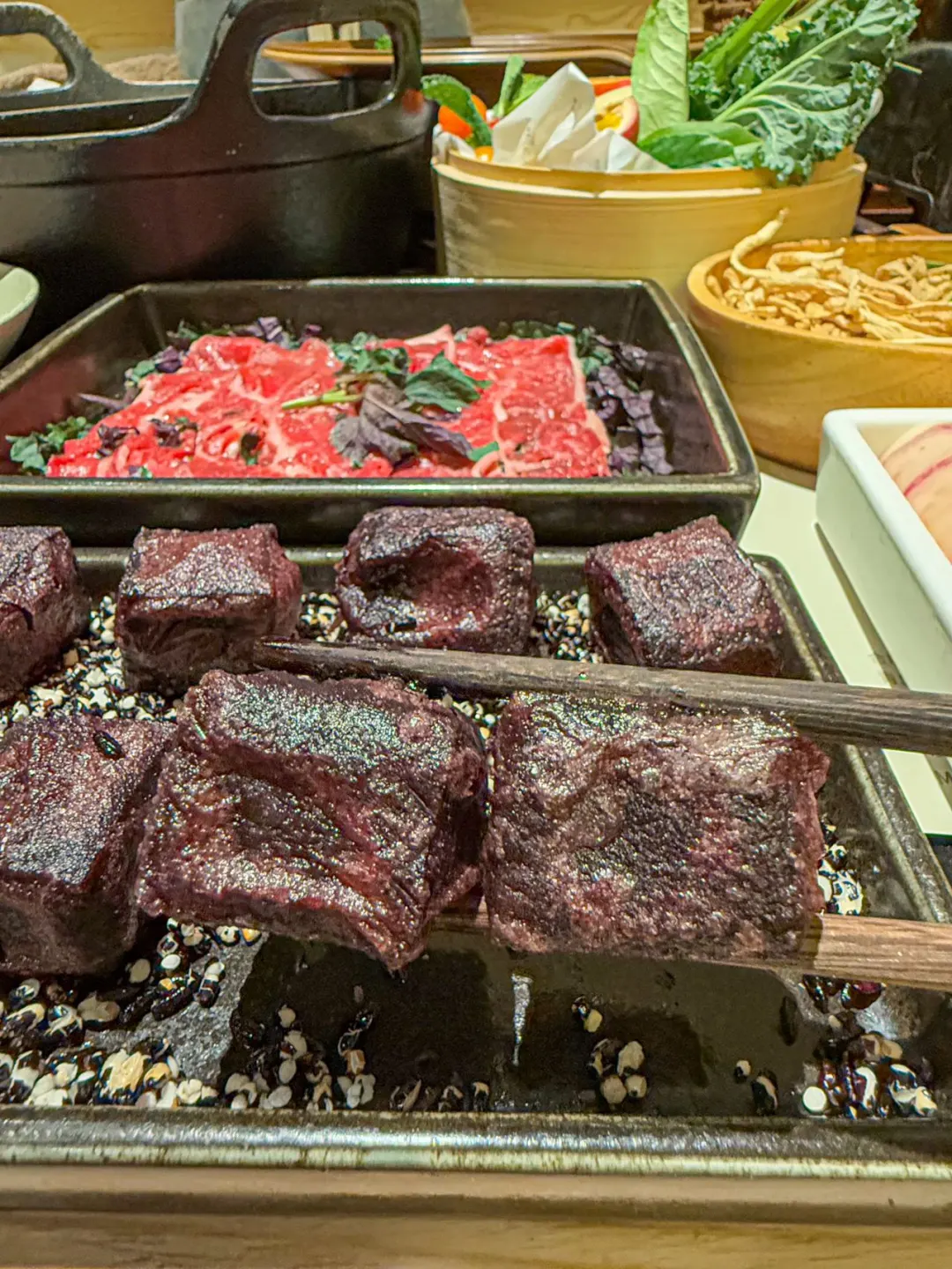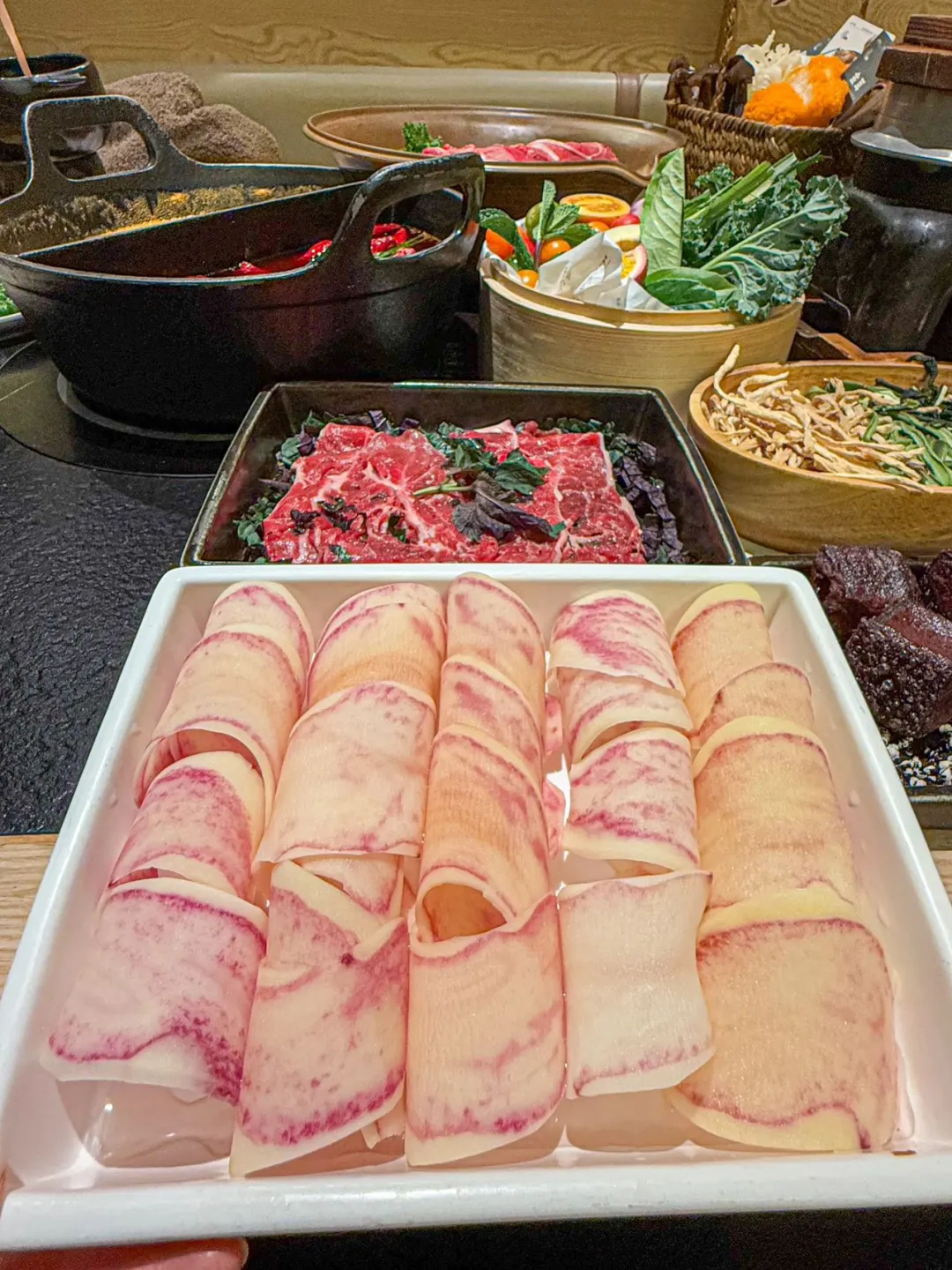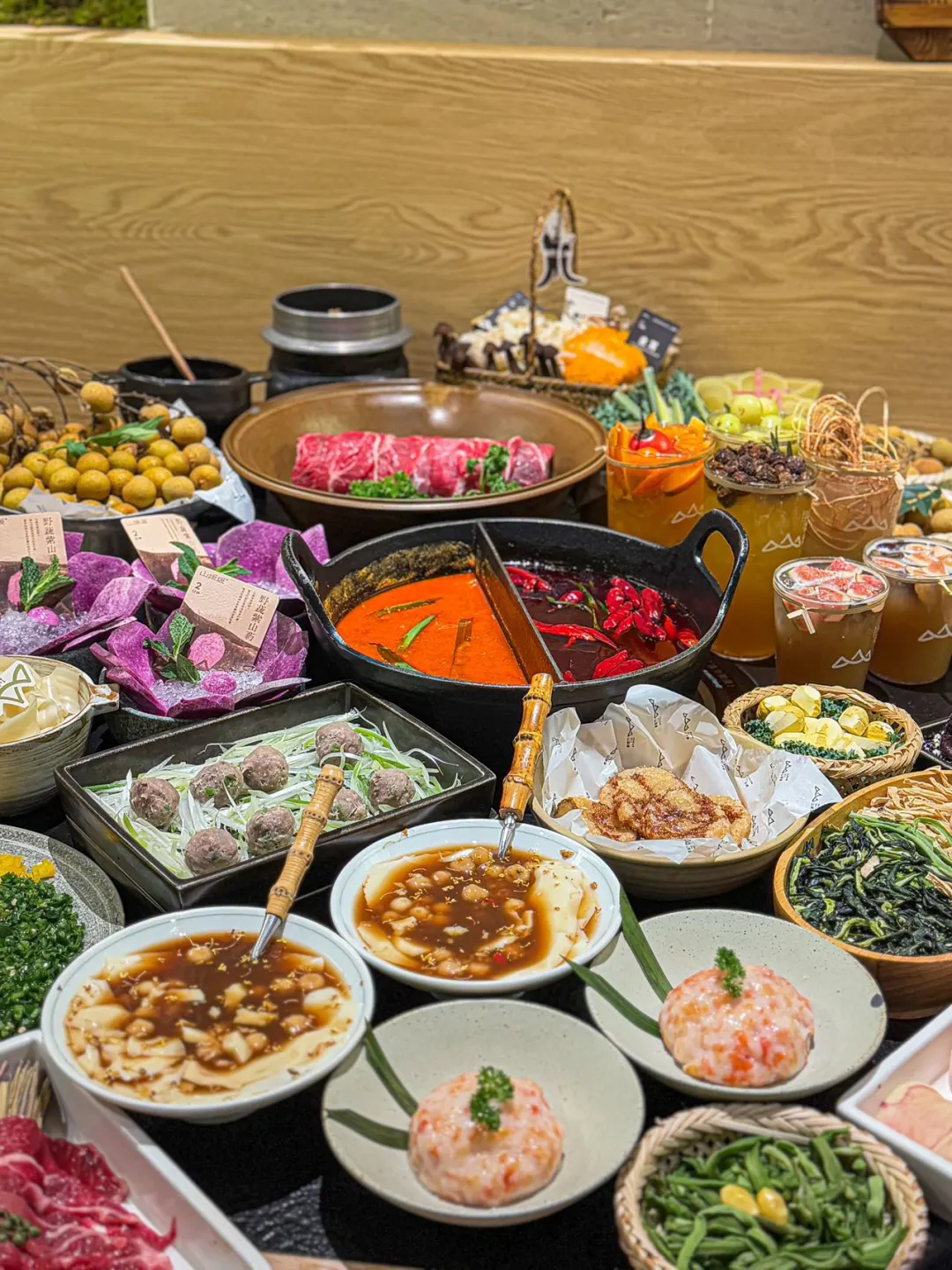 锅底还蛮丰富的!建议点野果酸汤和乐山红汤~