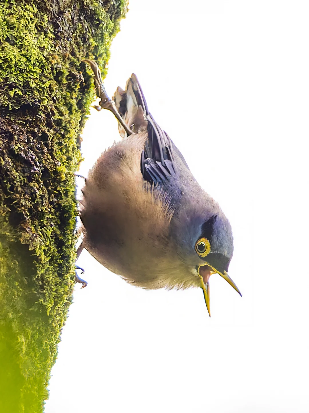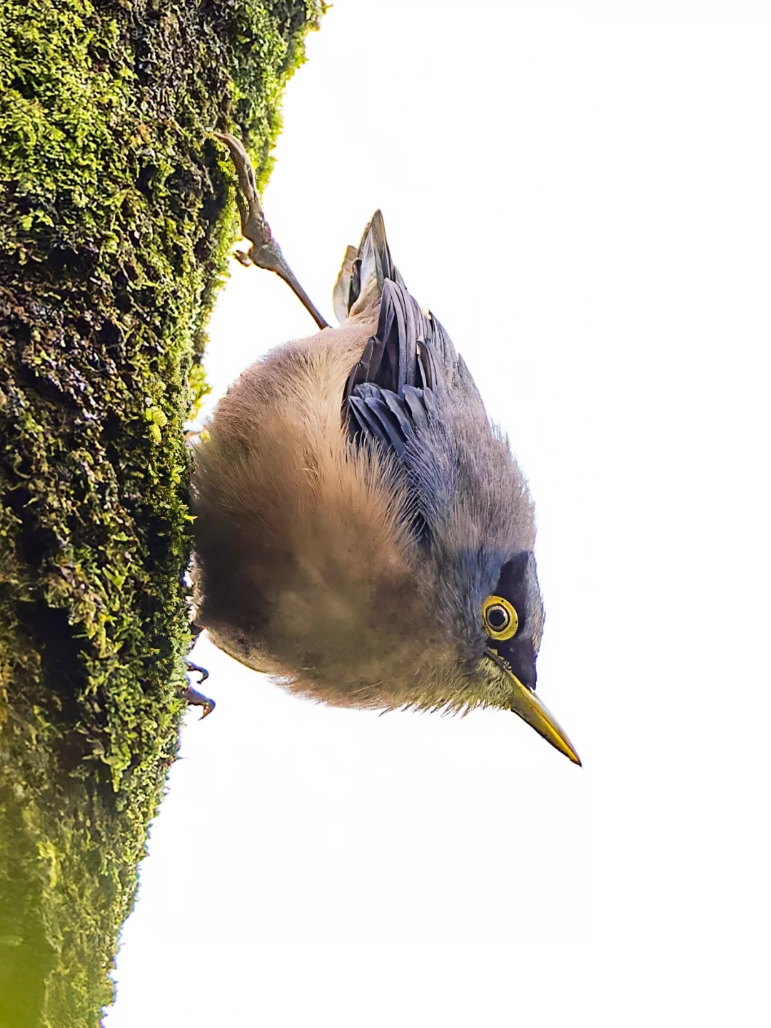 树上挂着一个小球鸟:黄嘴䴓(shī)