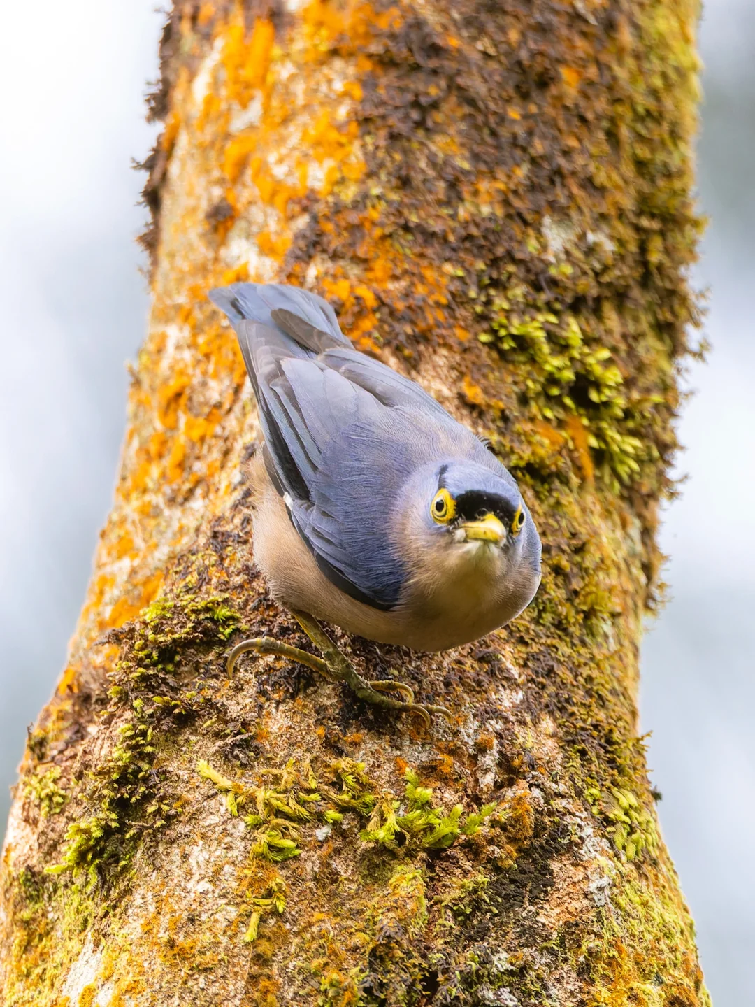 原创拍摄于2025.10 黄嘴䴓,Sulphur-billed Nuthatch,雀形目䴓科䴓属。仅分布于菲律宾。这是我第二次见到黄嘴䴓,第一次是在棉兰老岛,这一次是在吕宋岛。 我觉得黄嘴䴓非常像我们海南分布的淡紫䴓,蓝色背部、黑色翼缘、粉白下体,加上黄色喙、眼与眼环。 这几只黄嘴䴓非常喜欢和其他小型鸟类混群,裹挟在一群鸟浪里面,快速跳动,在光线欠佳的时候拍摄难度剧增,实在是累。
