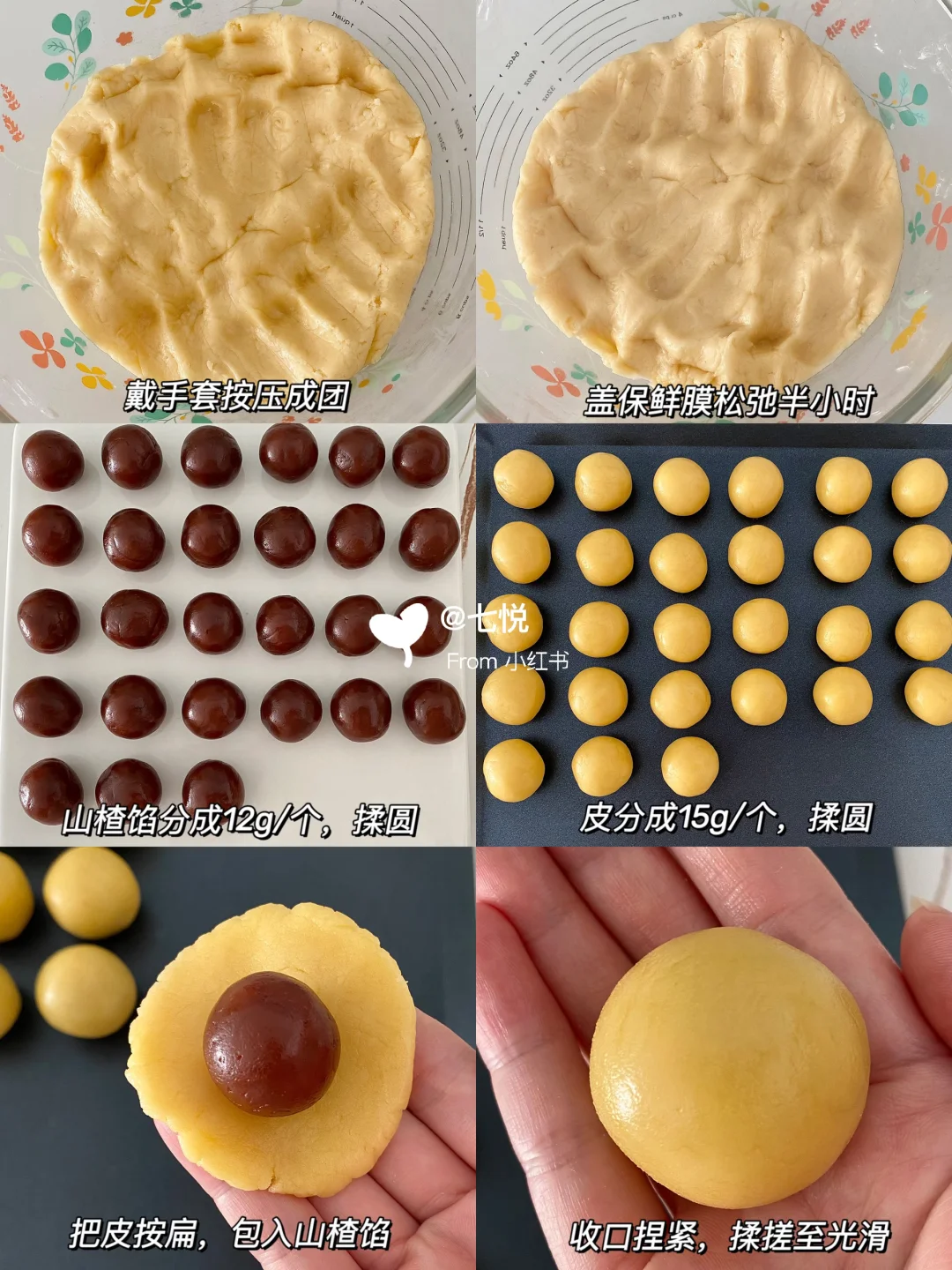4️⃣山楂馅分成12g/个,揉圆,皮分成15g/个,揉圆