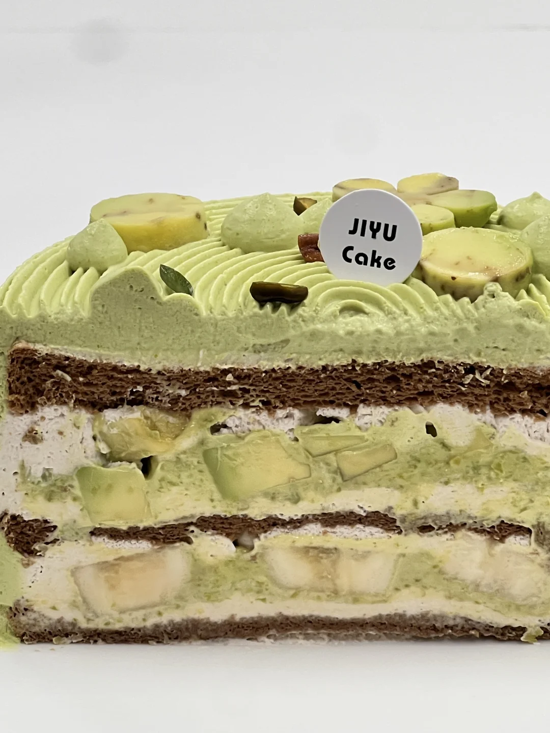 挖到宝咯 绿胖子蛋糕是开心果/香蕉/牛油果🥑的搭配 切开是双倍牛油果的内陷 还有开心果奶油巨浓香~