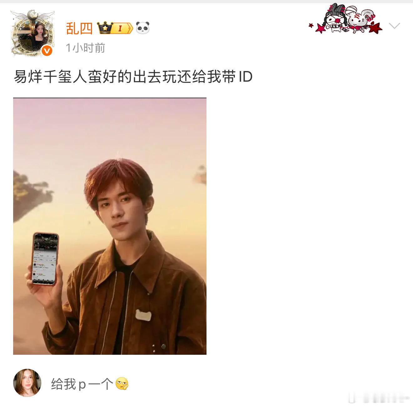 易烊千玺人蛮好的出去玩还给我带ID