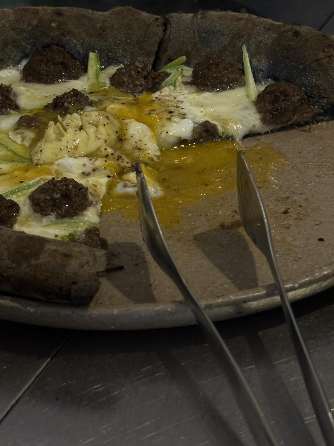 闺蜜心念念三天的手工披萨店 抽了个上午终于吃上了 就在汉南洞 氛围感很足 偏意式餐厅 很适合和小姐妹来 如果后面没有行程可以点杯酒 披萨配小酒 美滋滋~ 个人还挺推荐坐吧台 看主厨们做的过程体验感很赞 - 招牌是黑松露 很鲜 西红柿布拉塔很推荐 酸酸甜甜 鱿鱼是最爱 必点 意大利面不推荐 报吃hhhh~ 🍴:ATTA 📍:서울 용산구 한남대로27가길 8-3 1층