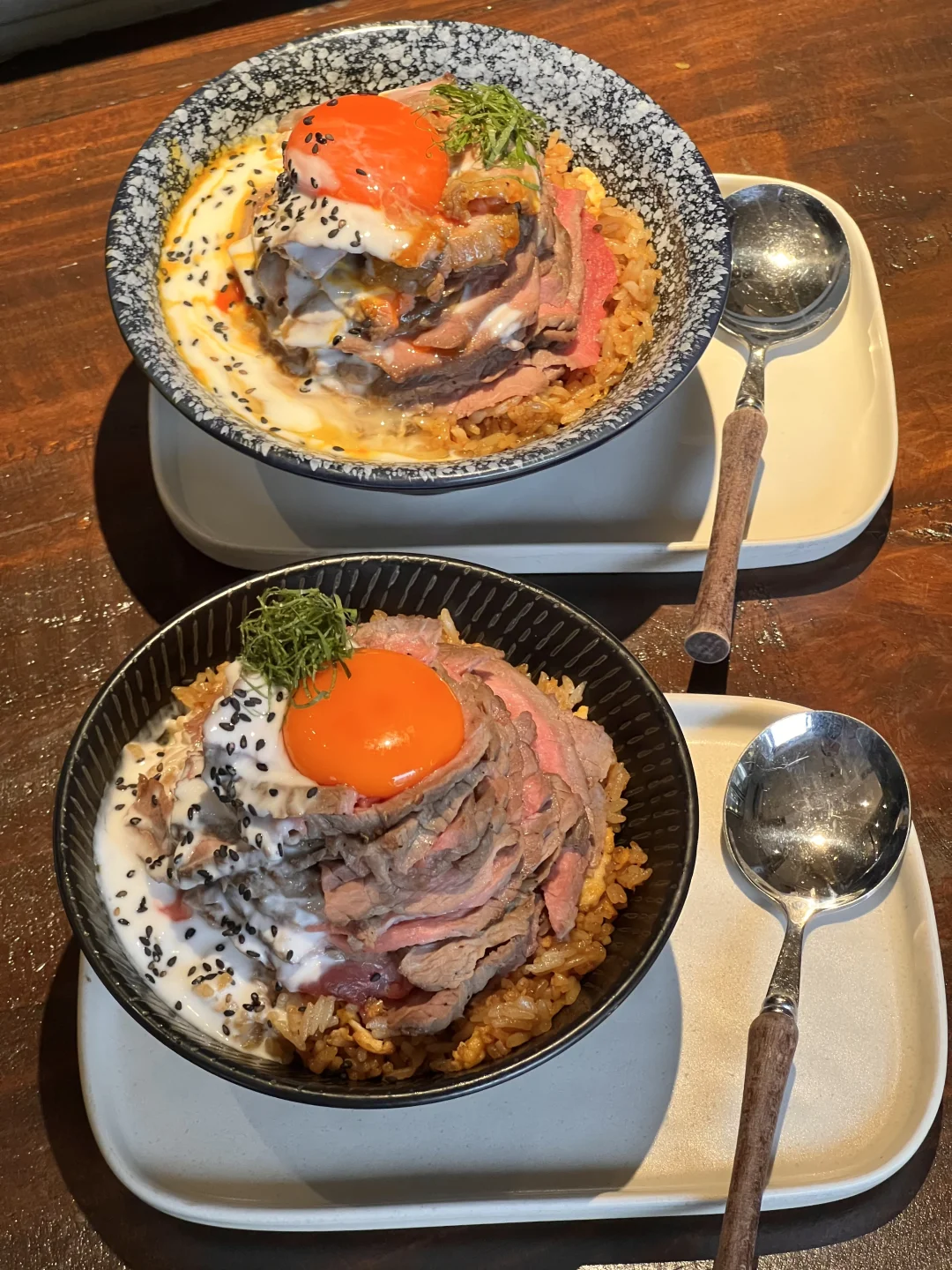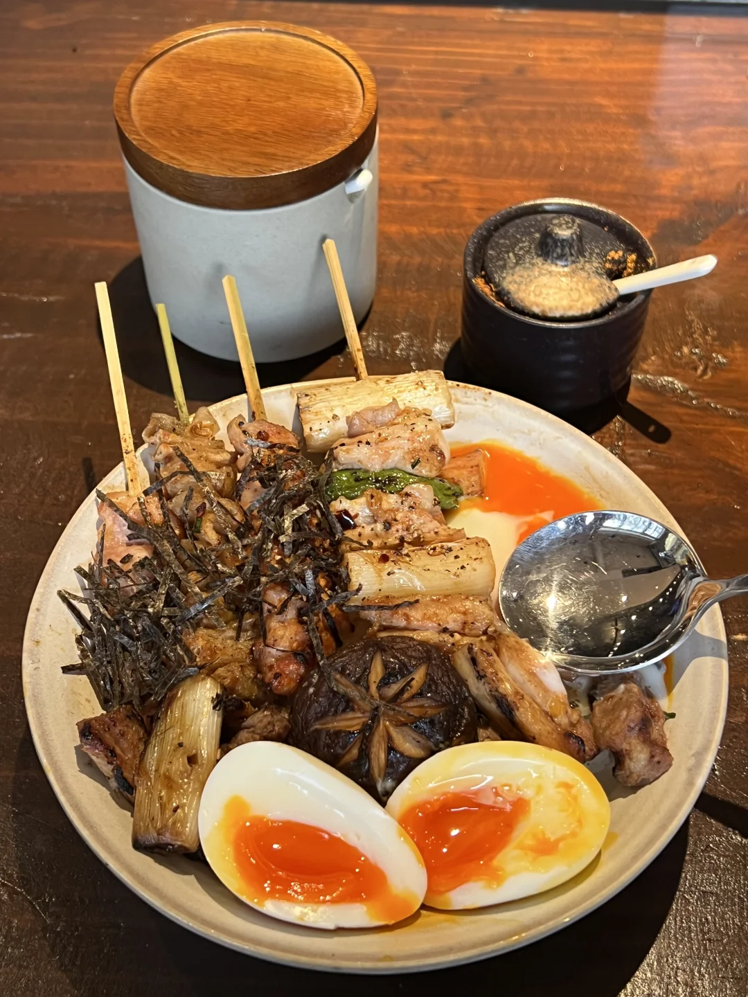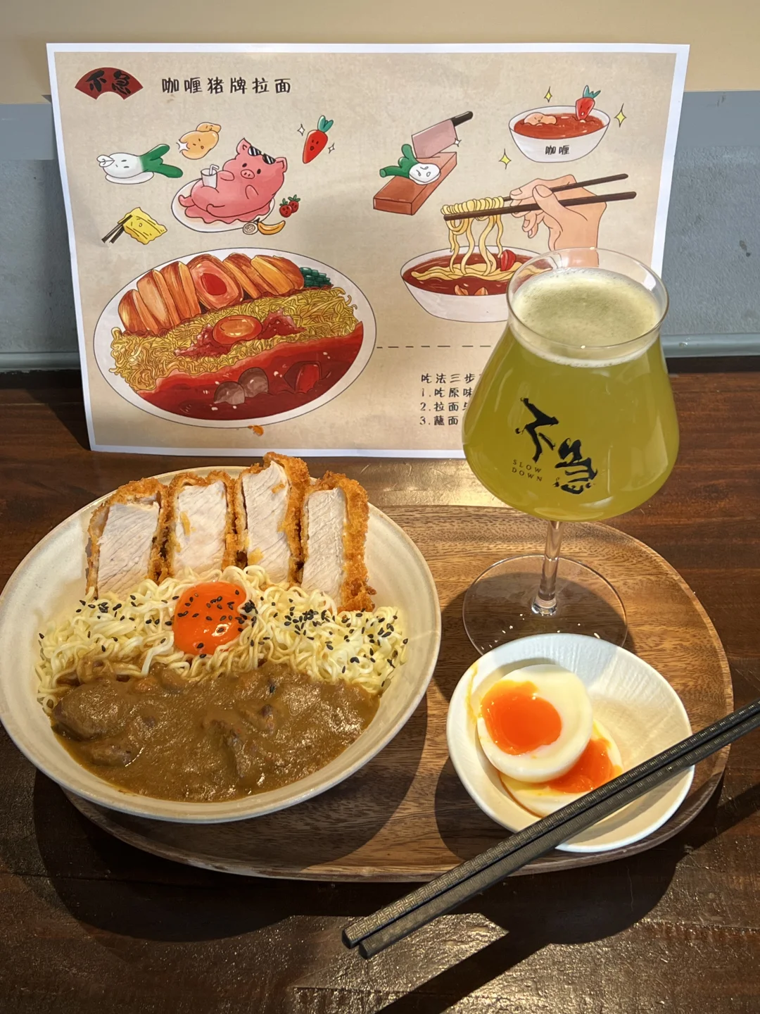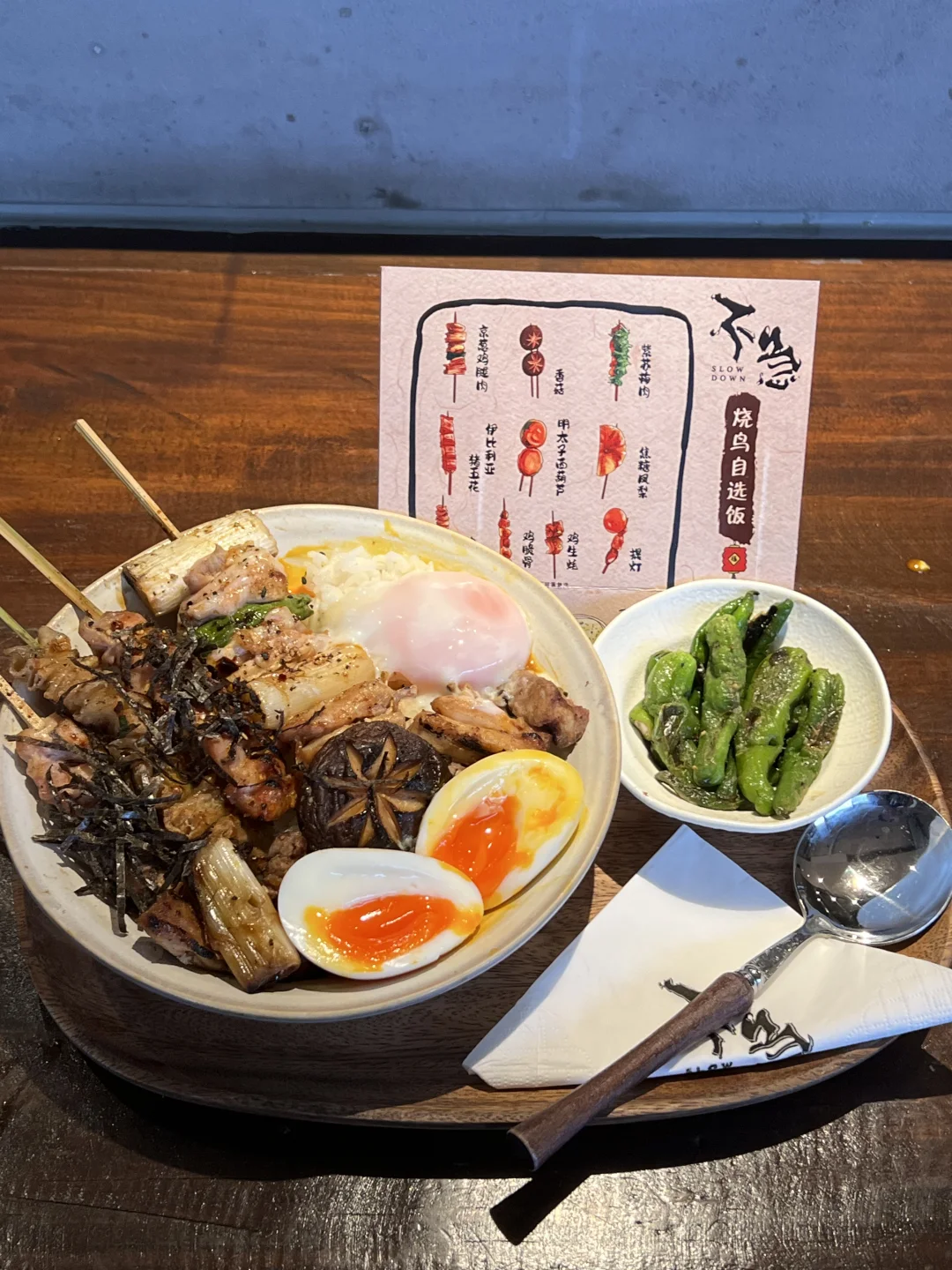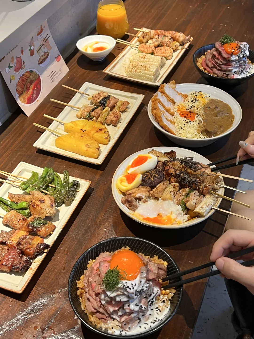 私心不想公开的小店 晚上氛围感好好~大部分都是回头客 在这里吃东西真的就是在享受食物带来的快乐 烧鸟全部炭火现烤,额外的香!烧鸟自选饭才58r 还有火山千层牛肉饭、咖喱猪排拉面每一个都好好吃 配上他们家的精酿一起~好满足