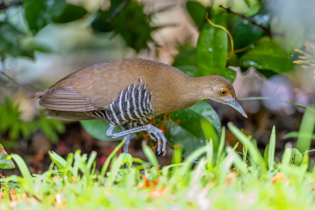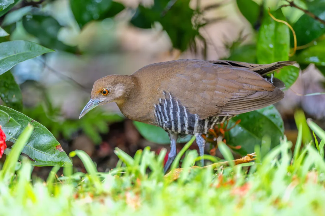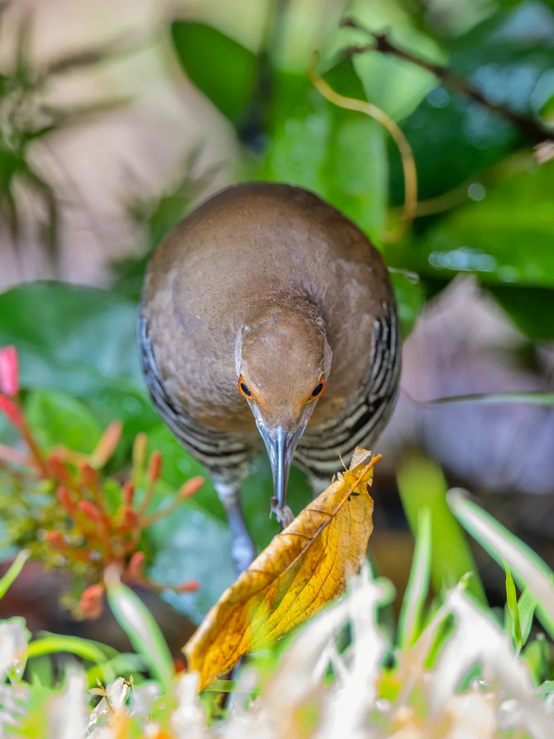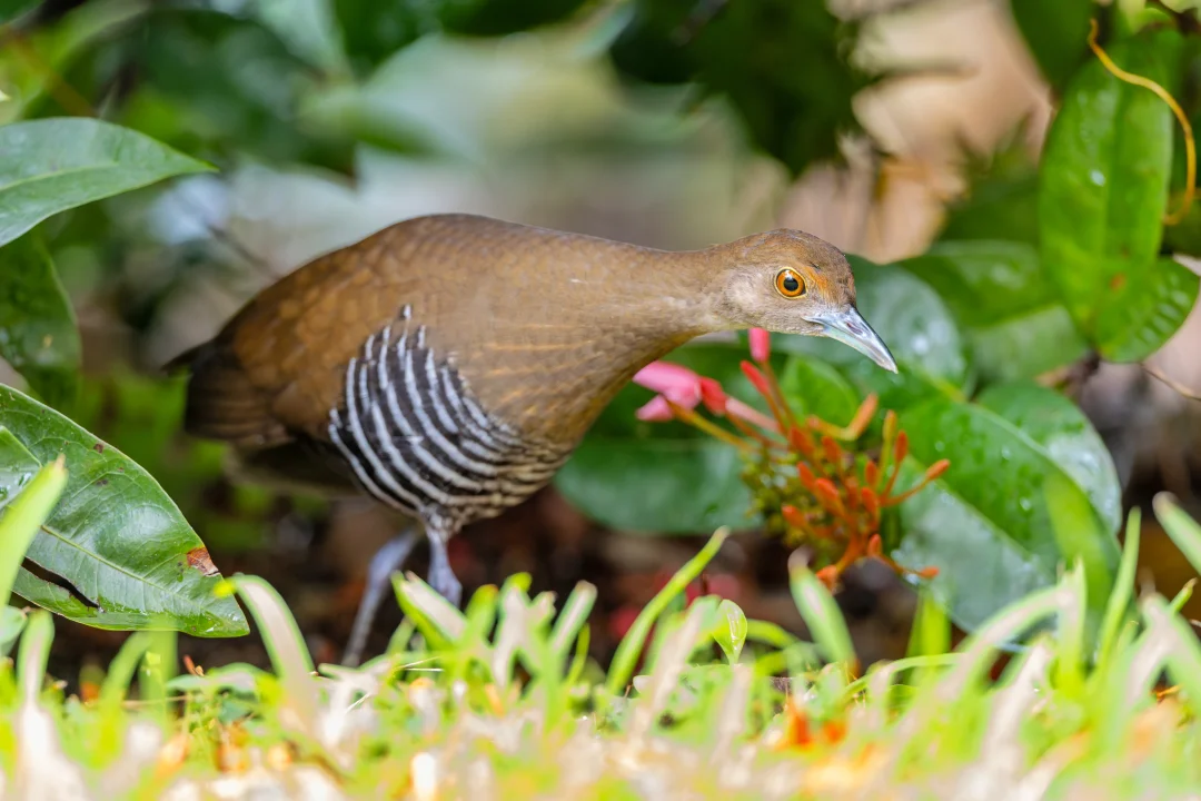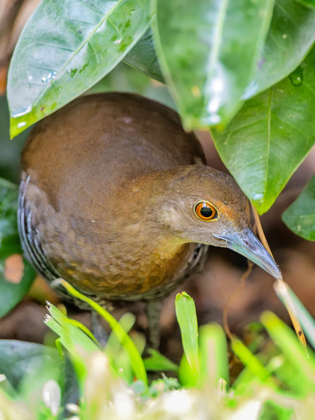 原创拍摄于2025.10 白喉斑秧鸡,Slaty-legged Crake,鹤形目秧鸡科斑秧鸡属。是在我国南部分布的一种小型秧鸡。名字可以看出,它喉咙略白,另外头胸橙色,腹部带黑白条纹,脚深铅灰色,都是它的特征。 白喉斑秧鸡其实在我国南方并不算特别罕见,只是非常担心,隐藏功力深厚,加上喜欢夜行,所以很难发现和拍到,就是野外能偶尔听见koko的叫声。 说到这里,真是不得不又双叒叕感叹,香港的神秘德福花园,这么小的闹市区小区的迷你花坛能每年都吸引超多好鸟前往,真是太神奇了!