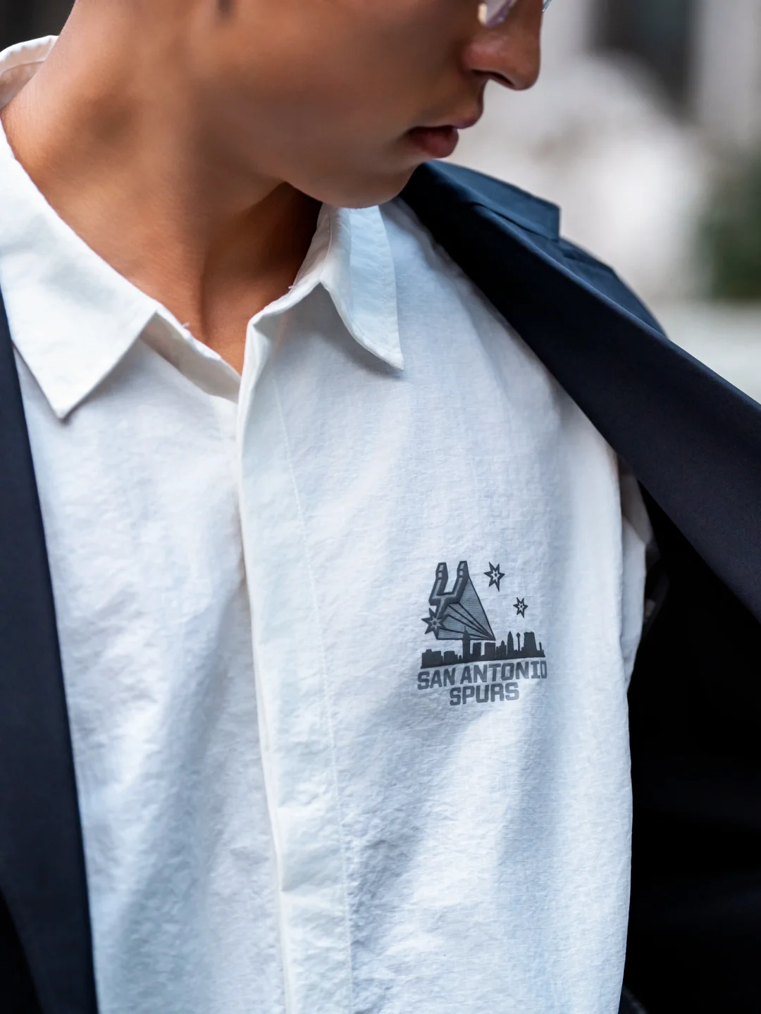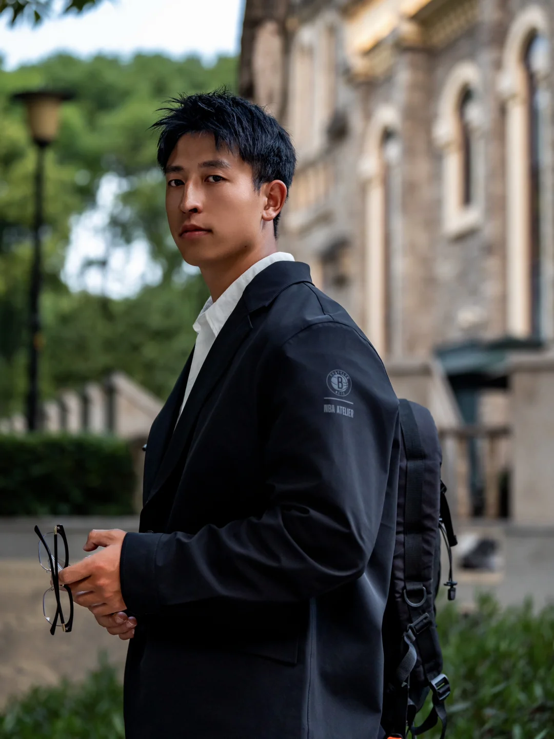 漫步重庆福音堂,哥特式建筑与都市光影交错,历史感与摩登气息在此碰撞。想要穿出仪式感又不失街头态度? ATELIER 布鲁克林篮网队防水西装外套就是你的出行答案——