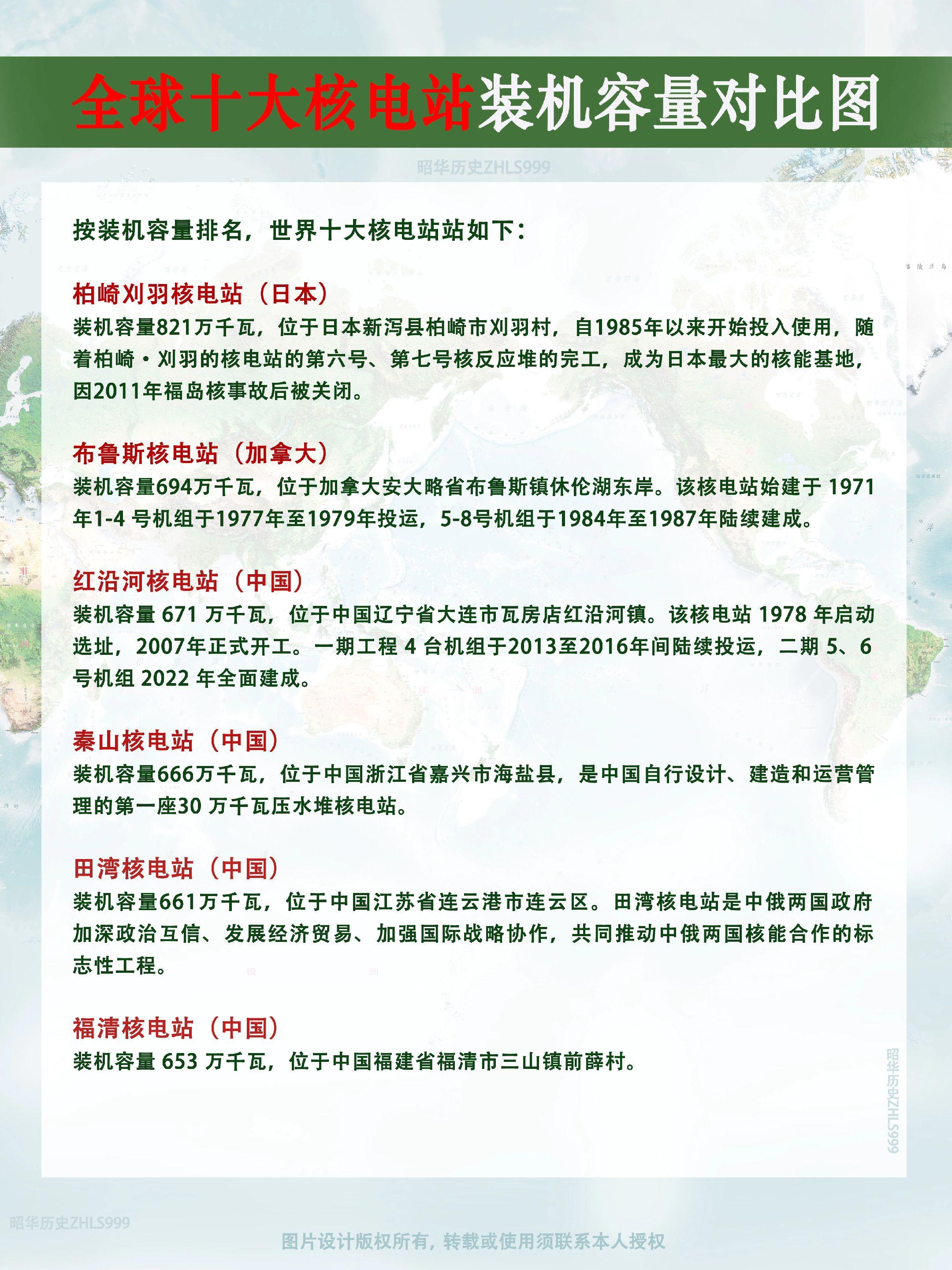世界最大十座核电站对比。按装机容量排名,世界十大核电站站如下: