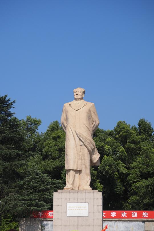 从小吃街向北走约10分钟,可以看到巨大的毛爷爷雕像矗立于此,这就是东方红广场地标,旁边就是湖南大学红楼,是非常有代表性的民国建筑