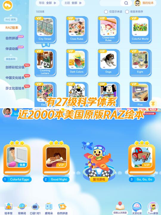 说起英语启蒙,我曾深陷误区——逼yeye每天背单词,他哭着说“学英语好难”。我这才惊觉,强迫孩子“没苦硬吃”只会扼杀兴趣,科学方法才是英语启蒙的捷径。后来用ABC Reading带他刷RAZ分级阅读,动画绘本里会说话的鸭子令他大笑😄AI智能评分把纠音变成发音闯关游戏。原来真正的启蒙,是让孩子追着知识跑 ​ 🌟海量原版绘本,英语启蒙无压力 作为国内唯一正版RAZ授权的APP,ABC Reading提供了近2000本美国原版RAZ绘本📚涵盖了20多个有趣的话题和科目。绘本覆盖了从aa-Z的27个阶段,由易到难,适合不同英语水平的孩子。yeye可以按顺序进阶,也可以根据兴趣选择书籍,丰富的内容令他学得津津有味。绘本都配有标准的美式发音,帮助yeye提升听力、语感和词汇量 ​ 🌟大胆开口,告别哑巴英语 以前yeye不太敢开口说英语,但在ABC Reading里,每本绘本都配有“开口说”环节,鼓励孩子模仿发音,进行口语练习。智能评分系统会即时反馈,实时打分,帮助纠正发音。每次获得三颗星🌟yeye就充满成就感。玩中学的方法让他不再觉得英语枯燥,而是在英语对话中越来越自信。通过互动练习,他逐渐摆脱了哑巴英语的困境,口语水平有所提高 ​ 🌟亲子互动,语言氛围更浓厚 yeye最喜欢APP里的“亲子互动”环节,每学完一本绘本,yeye都拉着爸爸参与单词比拼游戏🥳这种互动形式加深了他对绘本的理解,也激励他更认真学习。积极的语言氛围提升了yeye的学习兴趣,亲子间的沟通也更生动有趣,学英语成为了全家人的欢乐时光 ​ 🌟沉浸式体验,拓展知识视野 ABC Reading还提供了丰富的视频内容,涵盖社会科学、人文地理、卡通人物等领域。yeye仿佛进入了一个英语“电影院”🎬不仅能听到地道的美式发音,还能了解全球各地的文化和知识。沉浸式的学习氛围,令yeye的英语水平得到提升,也培养了他对世界的兴趣和好奇心 ​ 如今,yeye找到了适合自己的学习方式,学英语不再是枯燥的任务,而是充满乐趣的探索。那些曾让我焦虑的词汇量和发音,早在他给绘本配音时、在单词比拼的嬉闹中悄悄生长🌱yeye的改变告诉我:最好的教育,是让孩子以为自己在玩,而我们知道他在成长🩵 ​