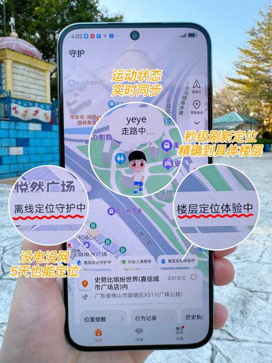 进入游乐场后,yeye总是迫不及待地冲向小火车、观光塔、旋转木马等项目,他兴奋得像个小猎豹,我和老公经常跟不上😂但华为儿童手表5 PRO的定位功能总能让我松一口气——只要通过手机📱就能清晰地看到yeye所在的位置👍他既能在人群中玩得开心,我也能保持跟踪,确保他在安全范围内。最让我放心的,是这款手表的离线定位2.0功能📍即使没电没网,5天内也能精准定位,令我悬着的心放下来,堪称人类幼崽的腕上守护神💙