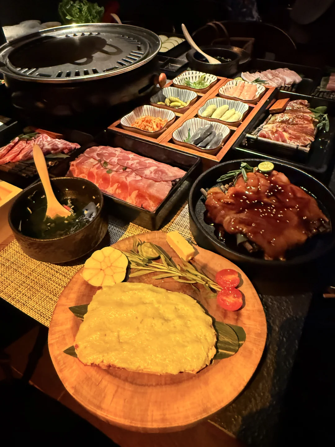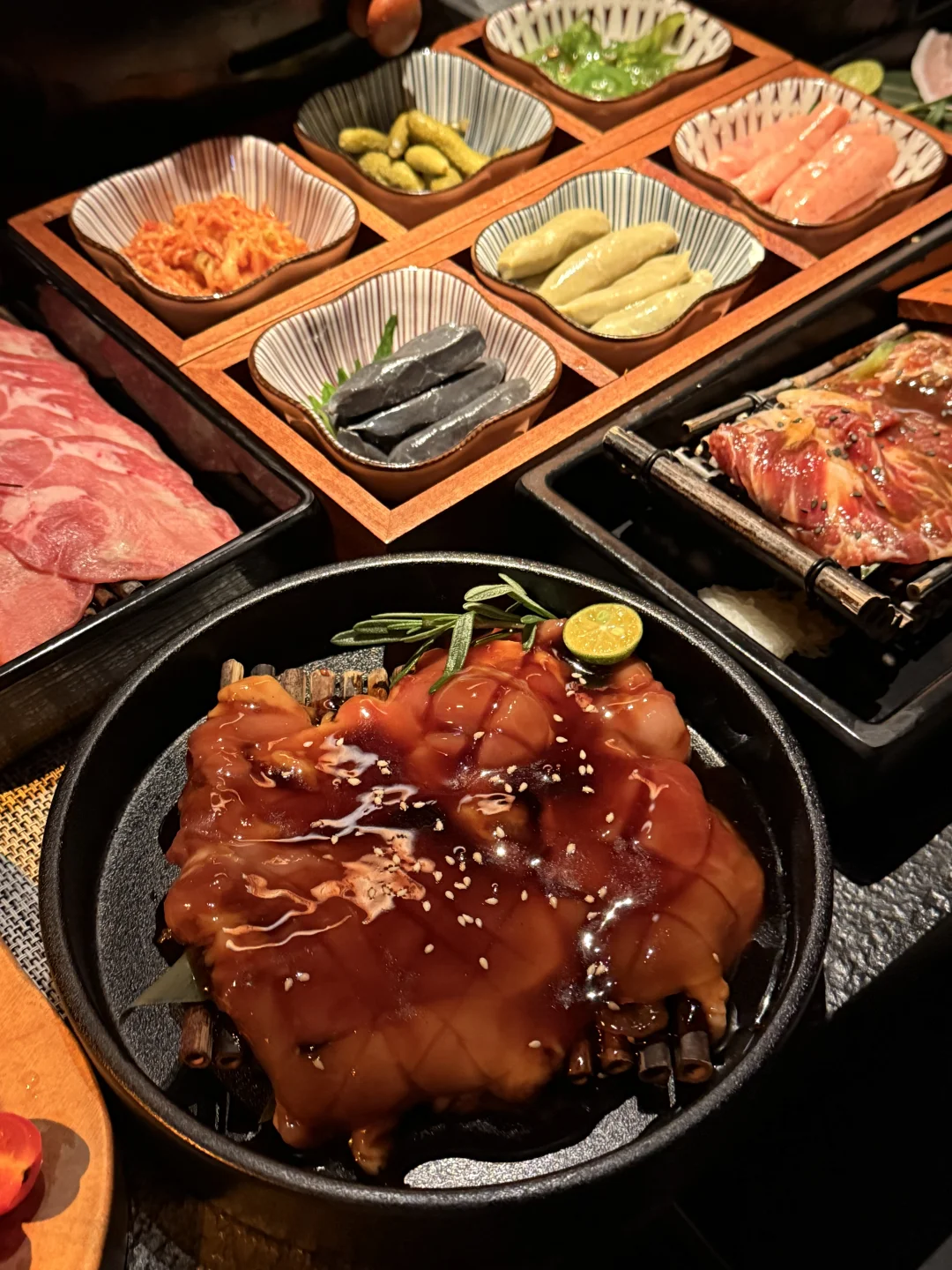 特别适合二人食烧肉店!!!装修有点日系的那种~氛围感蛮好的~主要还不贵!!! 鳗鱼饭和法式流心鹅肝饭我都好喜欢!难以抉择!鳗鱼甜甜的~肉质忒嫩!鹅肝也是一抿就化!口感无敌 夏天新出的橘子冷面也好清爽🥰奶油苹果茶颜值贼高!喝它!!!! 📍 阿米家·烧肉铺