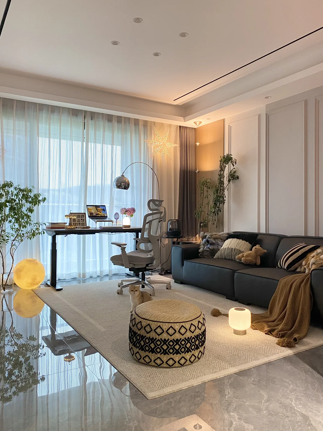 4室2厅2卫,保持原户型,现代简约风,黑白棕三色交织,满满都是理想家的模样。