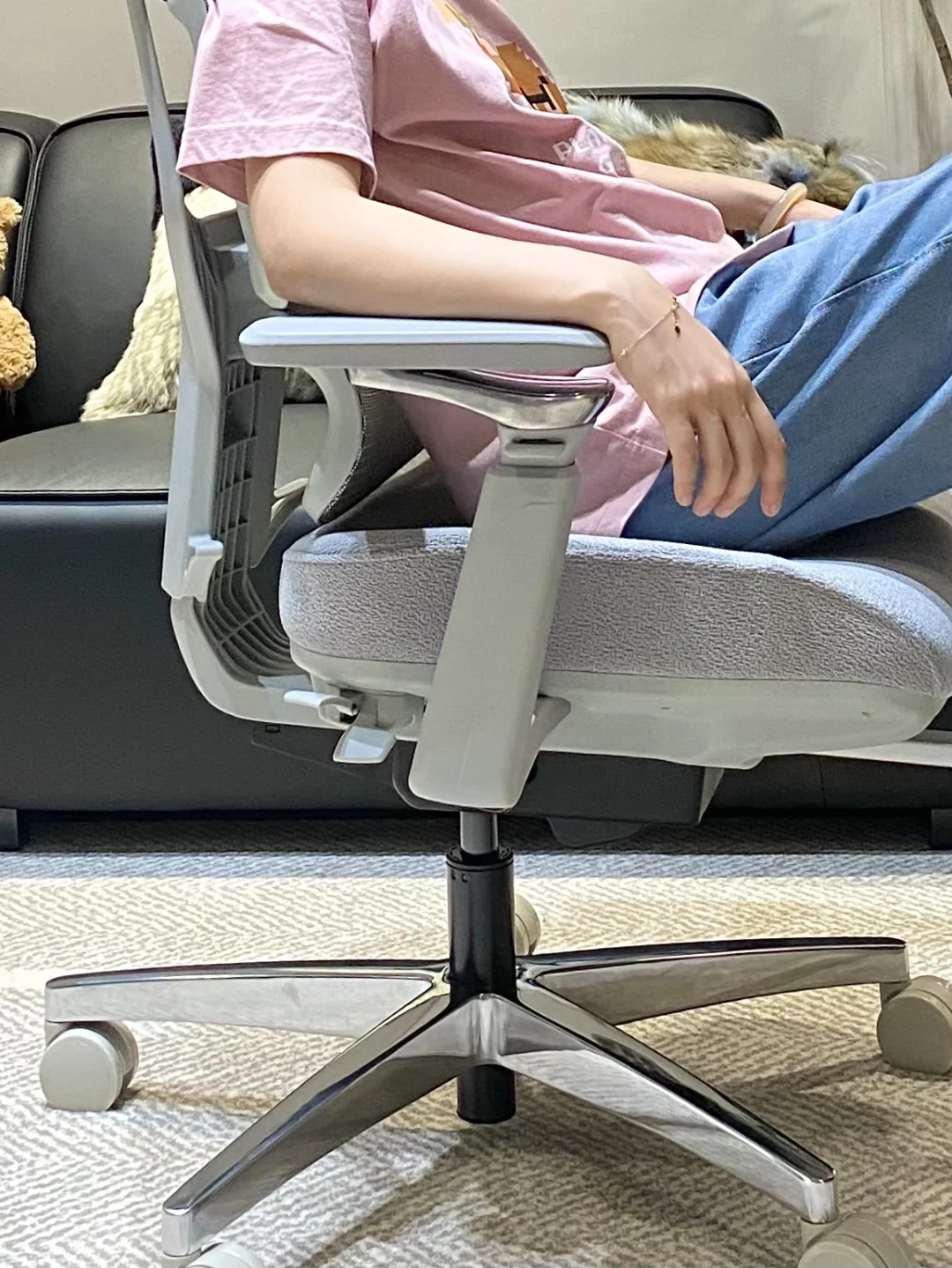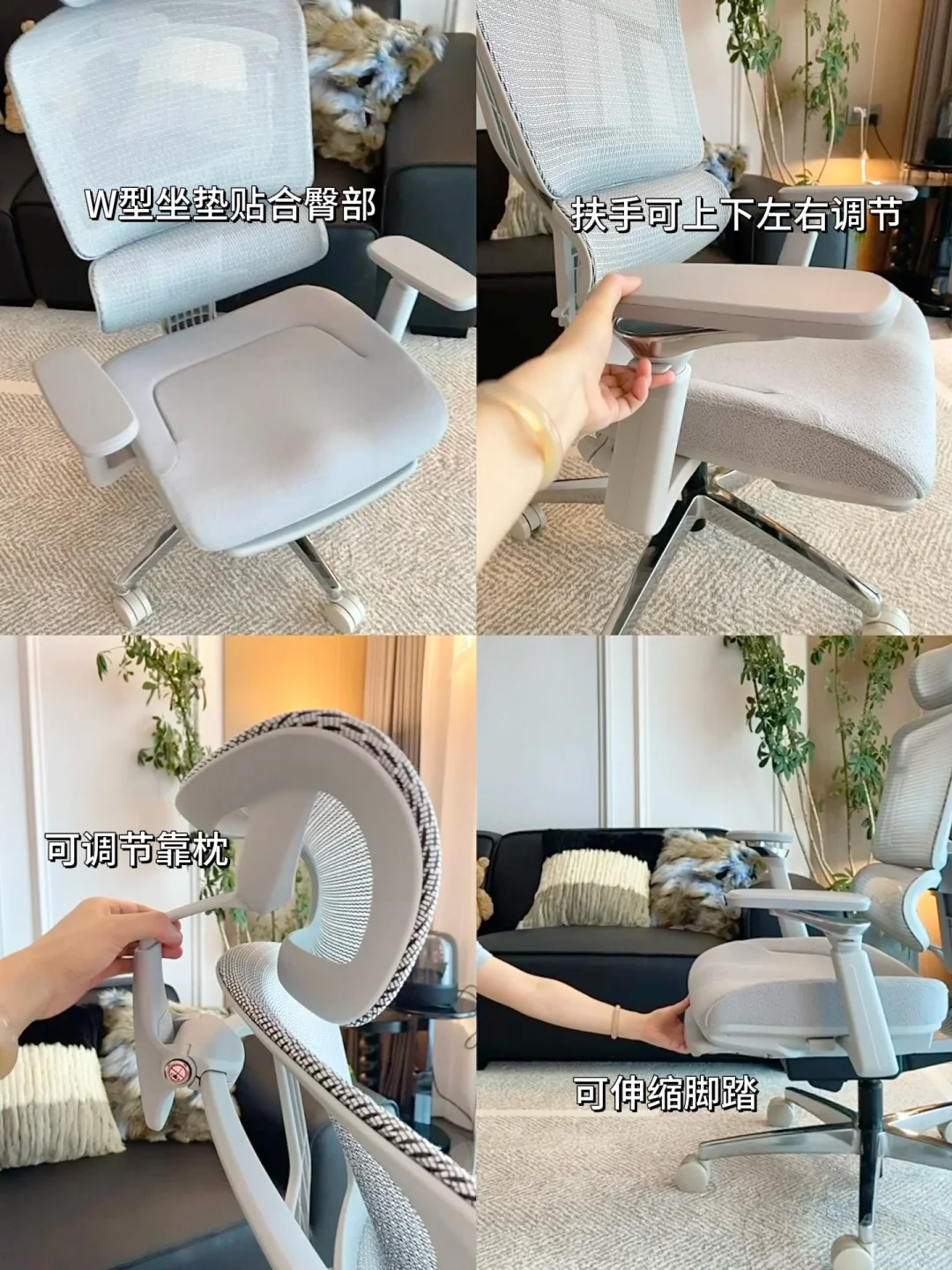这椅子厉害的是,各个部位都能灵活调节。还有椅背高度、扶手角度,甚至脚踏都能随心调整。