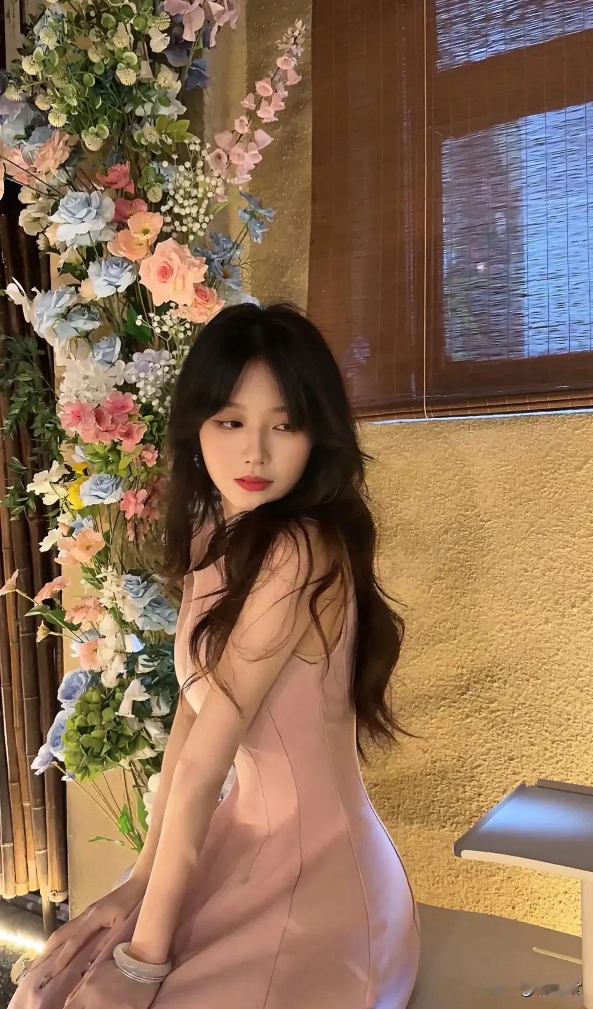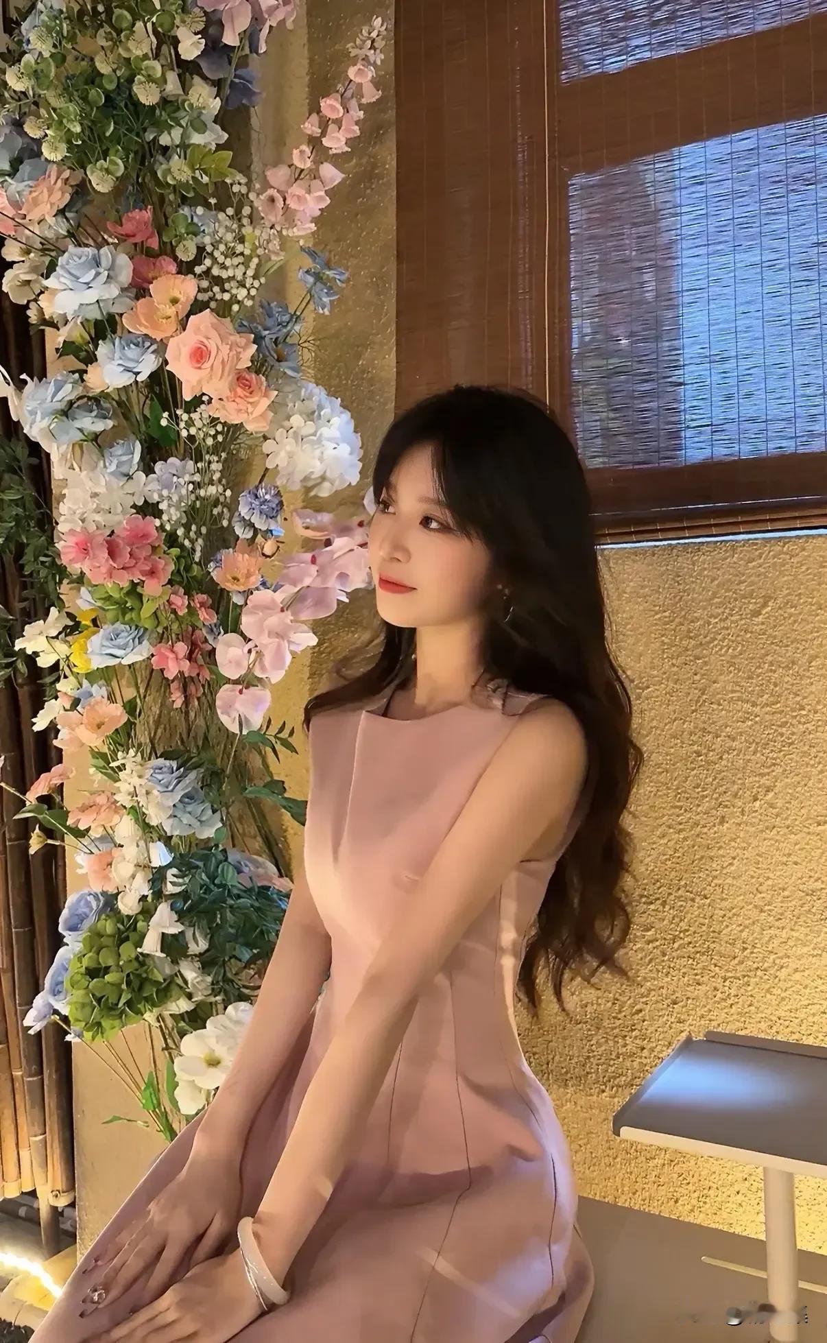 温柔粉裙少女,花海中的梦幻时刻