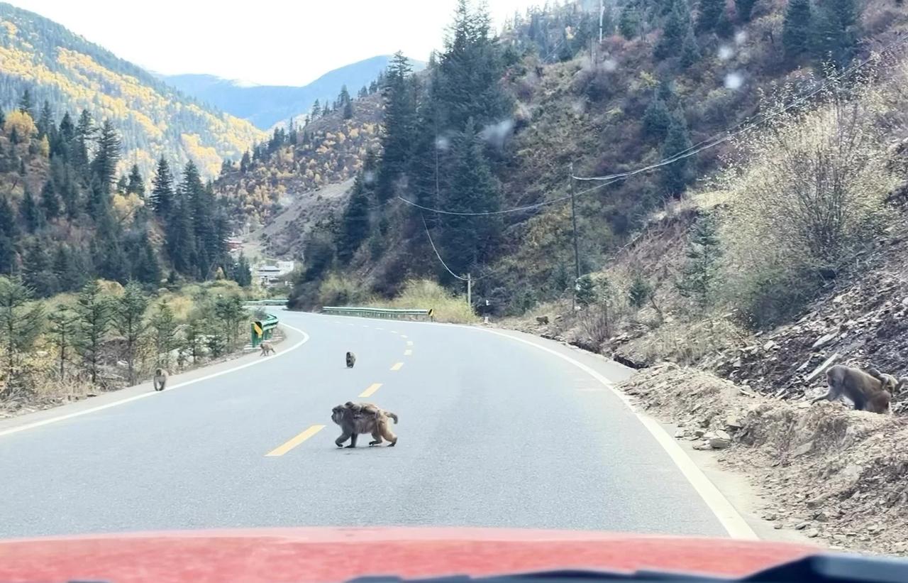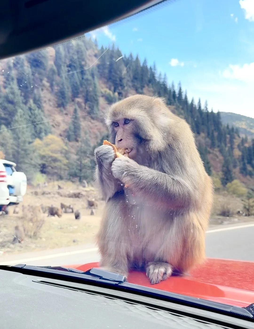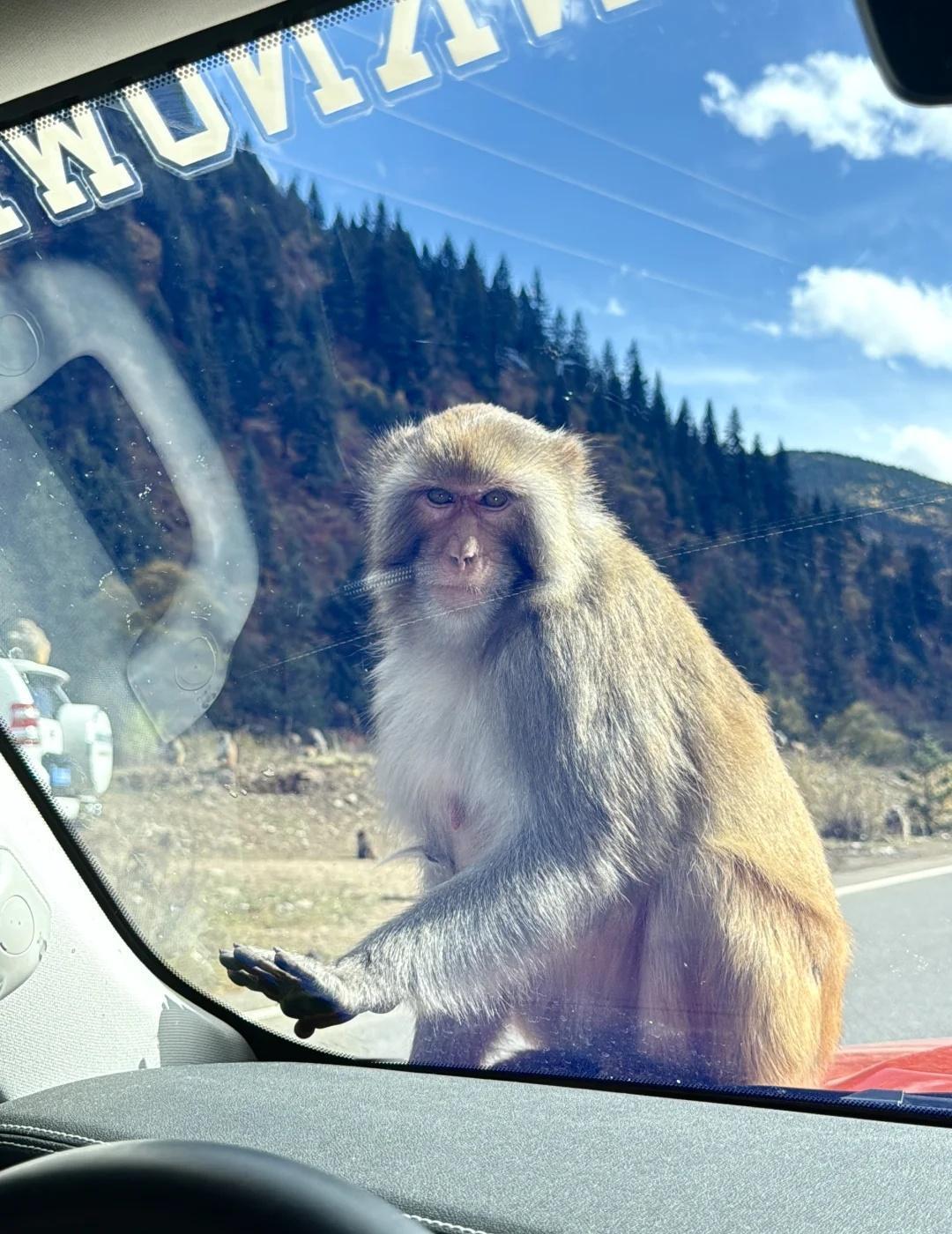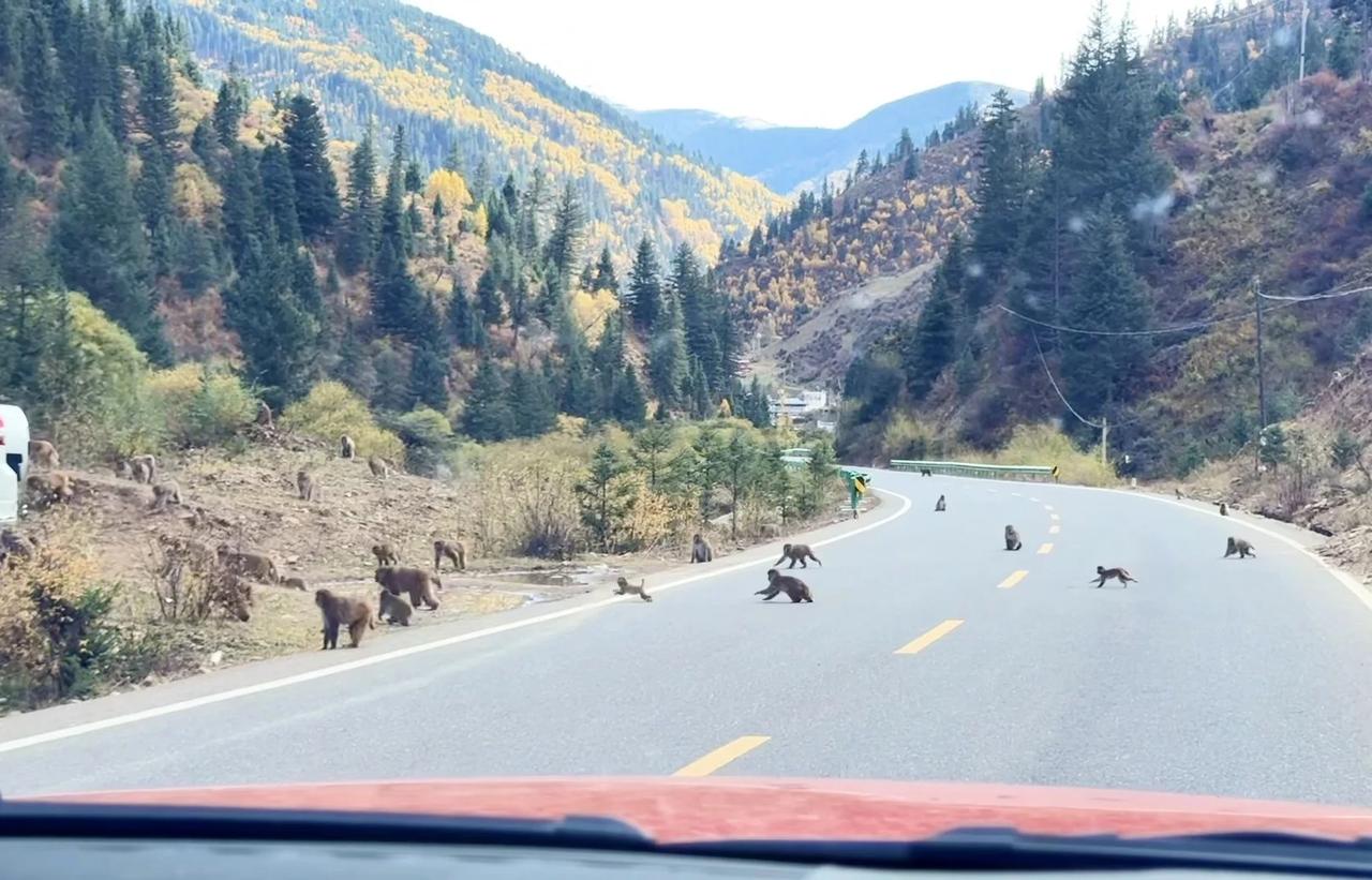 自驾川西 谁能想到会被藏猕猴拦路🐒❗️ 🚗从阿坝到炉霍县的路上,走G227快到泥巴乡的地方。沿路看到一个牌子写着:前方有藏猕猴出没。我还吐槽说这种野生的怎么可能这么容易遇到。 🐒结果!就离开这块牌子开了约十分钟,居然遇到一大群藏猕猴在马路上。p6 还有好多猴妈妈背着小猴纸在过马路。p7 就在路边停了不到两分钟,就有只猴直接跳上了引擎盖。摇开一丝丝车窗,给了个橘子,它居然朝我露出牙齿笑了下,然后再开始吃耶!真是太有礼貌了。哈哈哈哈 🙈但是后来又有两只猴猴爬上车,抢吃的,还坐在反光镜上, p9 看上去超恶霸的[偷笑]还从我们的车一跃跳到别人的车上p3!不得不说一下子近距离看到这么多猴猴,它们的真的面相都很不一样耶。 ps:秋季从阿坝到炉霍的这段路真的超美的,一路上都是开在彩林间[赞] 惊喜满满!遇到野生藏猕猴的地方在图10。 自驾游 川西旅游 阿坝 四川旅游 遇见野生动物的奇妙时刻 野生动物 猴子 惊喜追着秋天去旅行