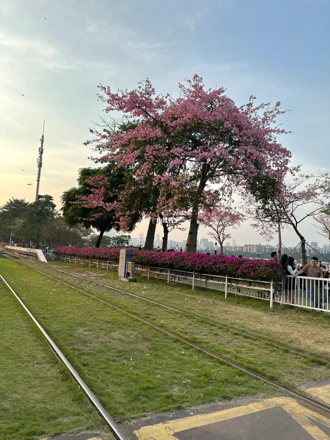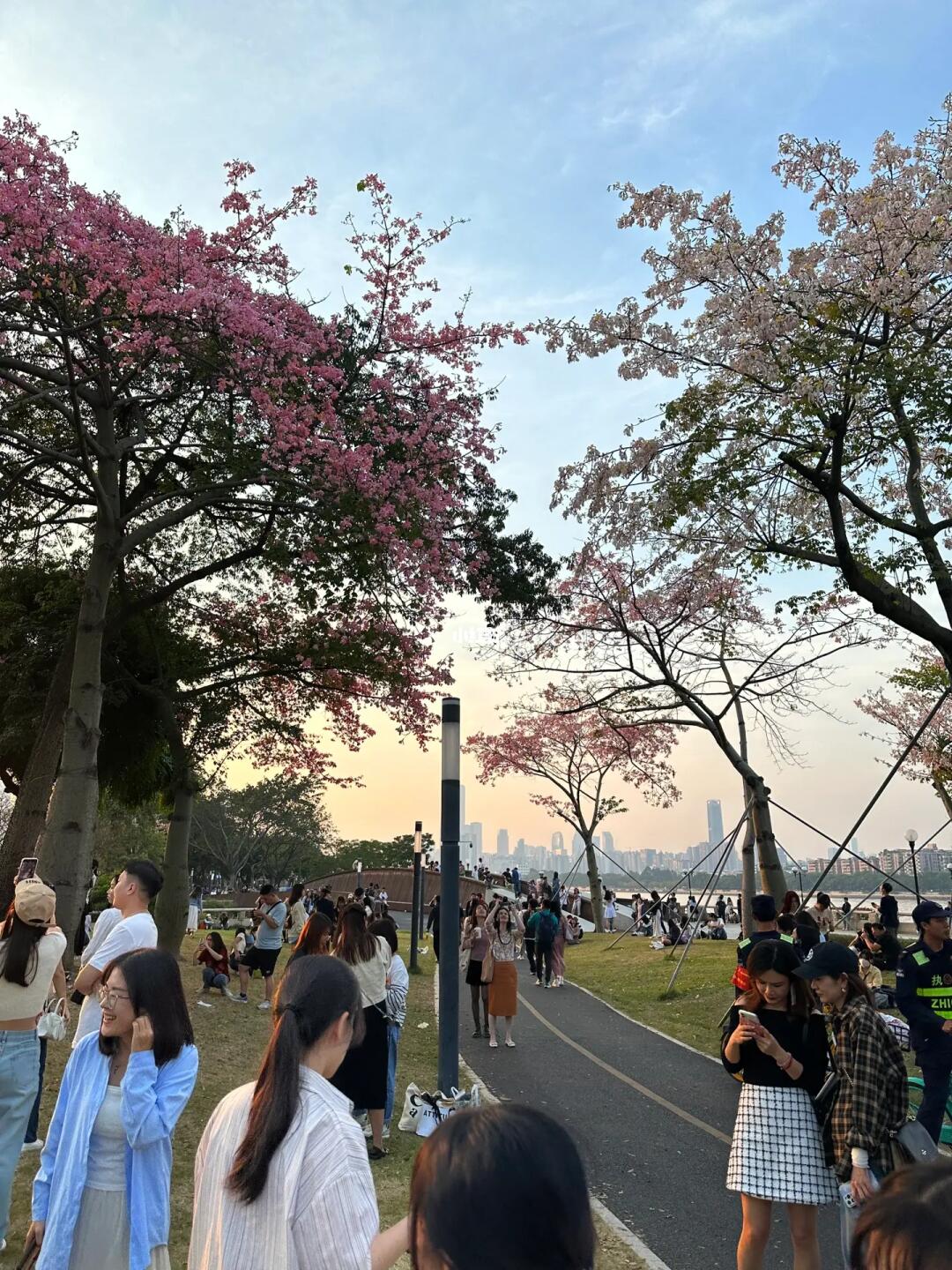 美是美,但人多到爆[捂脸R] 实时实况,天桥上全是人人人人👨👨👧👧 我相机都不想拿出来了[笑哭R] 凑合看个热闹吧 看个夕阳还更美 划到最后一张哦 - 但天桥底的滑板公园确实很适合遛娃! 带上🚲,释放娃的能量啊~