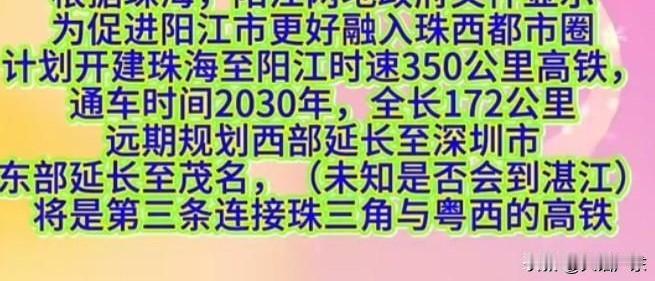 阳珠高铁经茂名设站可能性几何? 茂名在广东省内属于高铁普及率较低的城市,除茂南与电白外,信宜、高州、化州均未通高铁。 目前,阳江至珠海的高铁已有初步动向,正处于探讨阶段。鉴于广东经济实力较强,建设高铁的可能性较大。不妨思考一下,深圳—珠海—阳江—茂名—玉林—南宁这条高铁通道有无开建的可能? 若该通道能够开建,茂名下辖的信宜、高州有望设站。大家怎么看? 粤西高铁站 茂名高铁口 茂名城轨 电白高铁站 阳江至深圳高铁 粤西城际铁路 信宜高铁站