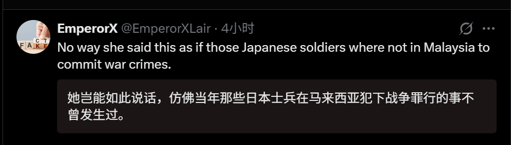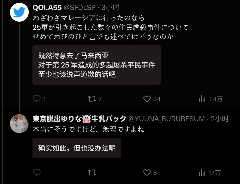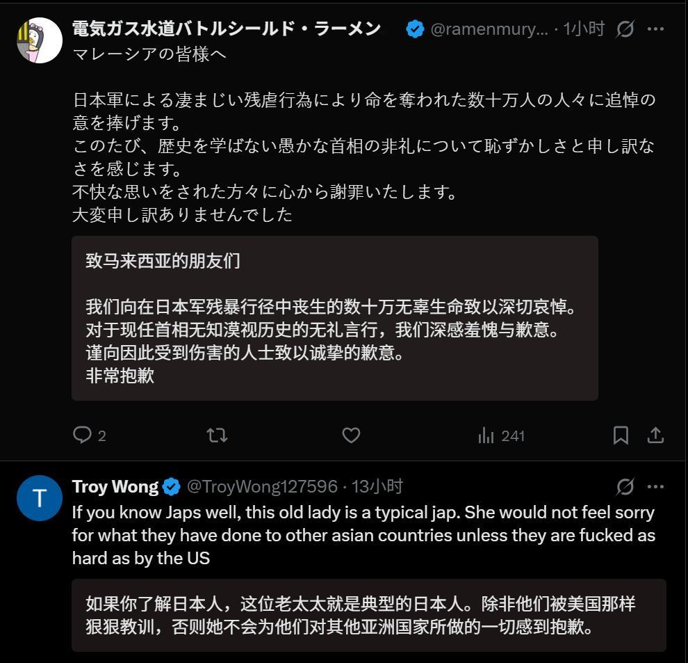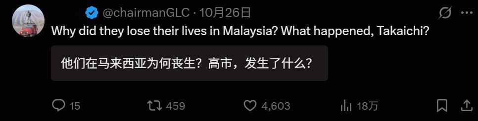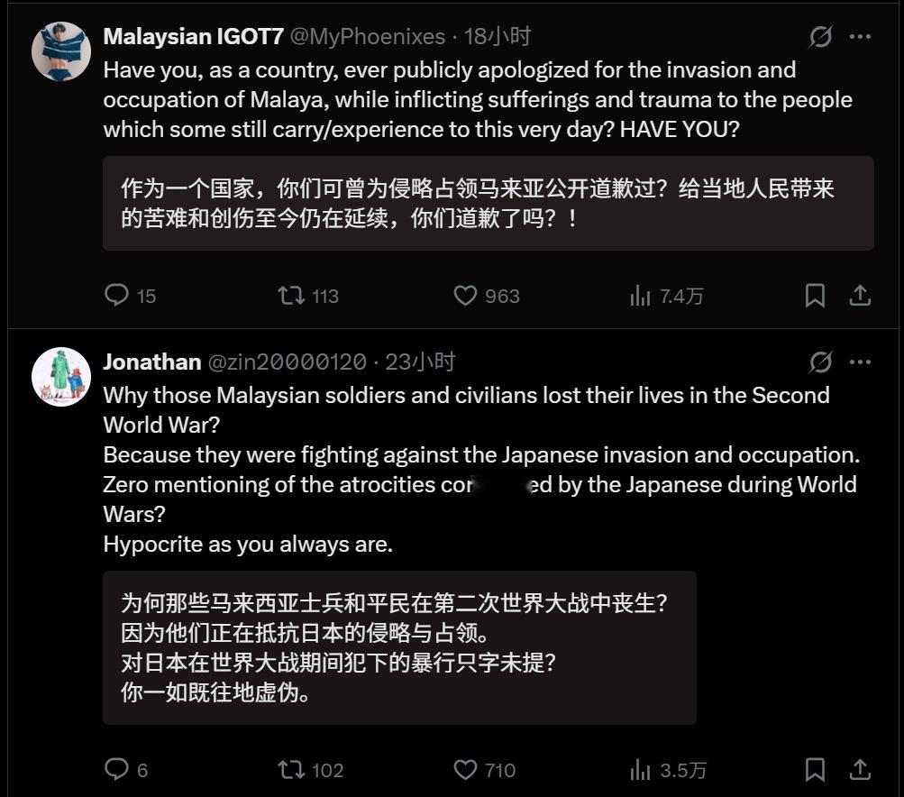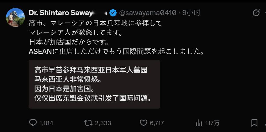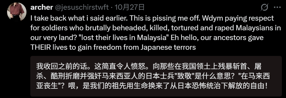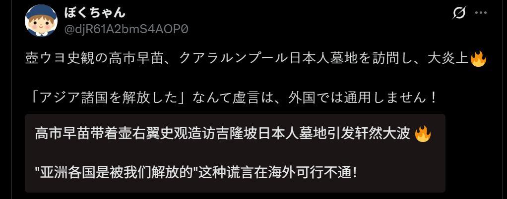🔻高市早苗在马来西亚拜拜的帖文正在国际引发热议,因为许多外国网民不认为她对战争怀有歉意。