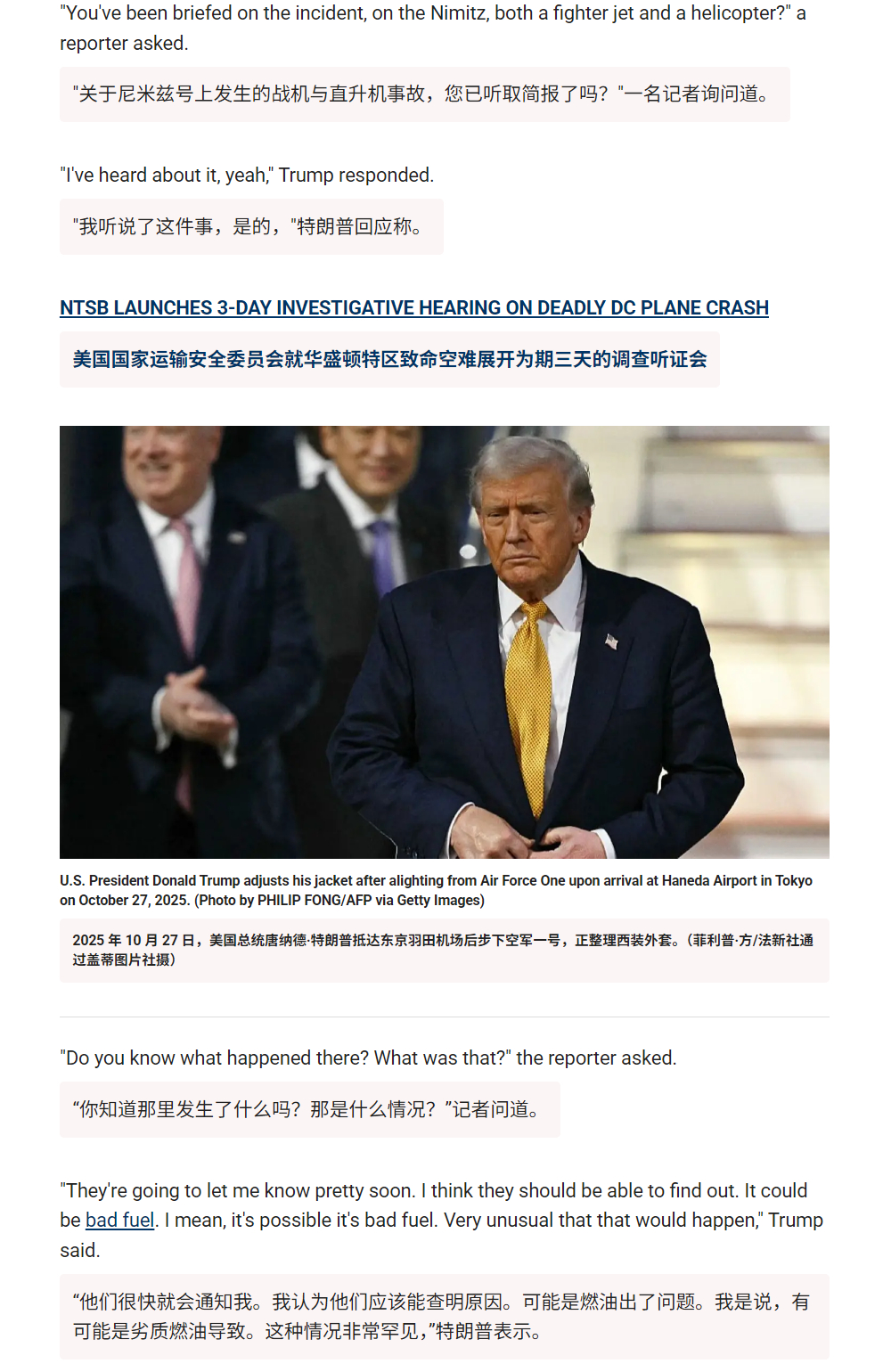 🔻特朗普如此快的抛出“可能是燃油问题”,也是有意思。