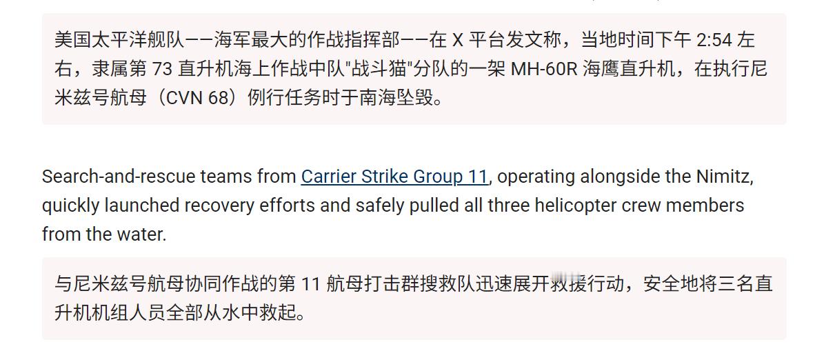🔻如果燃油有问题,那连续钓了两次蜻蜓的第 11 航母打击群搜救队,为什么燃油没出问题?