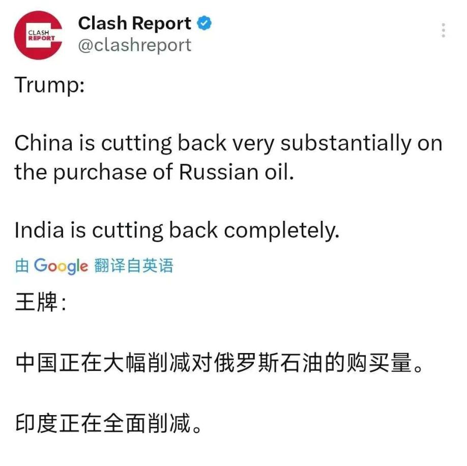 10月26日,特朗普发文说:“有个好消息想告诉大家,中国正在大幅削减对俄罗斯石油的购买量,印度正在全面削减。” 特朗普这话纯粹是睁着眼睛说瞎话,根本没一句真的!中国压根没削减对俄罗斯的石油购买量,印度更谈不上什么全面削减,反而俩国都在按自己的需求正常采购。 先说说咱们中国的情况,别听他瞎忽悠,官方刚放出来的 9 月数据清清楚楚,从俄罗斯进口的原油比 8 月还多了 4.3%,一共 828.7 万吨,俄罗斯现在还是咱们最大的原油供应国呢。 而且就在上个月,中俄刚签了 25 年的石油大单,每年要给咱们供 4600 万吨原油,总金额都 2700 亿美元了,这要是真削减,能签这么大的长期合同吗?明显是骗人的。 咱国家买石油从来都是看自己的需求,不是看美国脸色办事,现在国际油价忽高忽低,能源供应不稳定,俄罗斯的石油不仅质量符合要求,价格还合理,运输也有管道保障,为啥要削减? 再说了,咱们也没把供应源拴在一棵树上,9 月从印尼、巴西买的原油也涨了不少,这是拓宽渠道保安全,跟削减俄罗斯石油根本不搭边。特朗普要么是没看数据,要么就是故意造谣,想给咱们施压,可咱根本不吃这一套。 再看印度,特朗普说人家 “全面削减”,简直是自欺欺人到极点,有数据显示,10 月上半月印度每天从俄罗斯买 180 万桶石油,比 9 月一天还多 25 万桶,这叫削减?明明是越买越多! 俄罗斯石油现在占印度进口总量的三成多,主要是太便宜了,每桶能比国际油价低好几美元,就今年上半年,印度光买俄油就省了 85 亿美元,一天多省 1440 万美元,换谁都得买啊。 印度外交部都出来说了,根本不知道特朗普说的 “莫迪承诺削减” 那回事,莫迪自己也只字没提,明显是特朗普自己编的 “好消息” 往脸上贴金。 美国拿 50% 的关税逼印度,印度表面上可能让个别企业装装样子,但实际上该买还买,毕竟省钱的事儿谁愿意放弃?那些说印度转向中东的消息,也就是个别企业的小波动,根本算不上全面削减,特朗普这是把自己的愿望当成现实了。 特朗普为啥要扯这种谎?说白了就是政治算计,他想显得自己对俄罗斯施压有效果,拉着印度站队,还想给中国扣帽子,好给自己捞政治资本。 可他心里门儿清,对中国根本不敢真下手,咱们手里有稀土这种能卡美国脖子的东西,真闹起来美国企业得哭爹喊娘,所以只能嘴上造谣。 对印度就不一样了,觉得能靠关税吓唬住,可印度也不傻,真要全面停购俄油,自己的能源成本得涨一大截,老百姓得骂街,莫迪才不会干这种傻事。 其实这事儿说白了,各国买石油都是为了自己的利益,不是看美国脸色,咱们中国要保能源安全,俄罗斯的石油稳定又便宜,合作是双赢;印度要省钱,俄油的价格优势摆在那儿,根本没法拒绝。 特朗普想靠造谣来操纵舆论,简直是把大家当傻子,现在数据摆得明明白白,中国 9 月进口量涨了,印度 10 月还在加量,他那套说辞根本站不住脚。 别听他瞎嚷嚷,真真假假一看数据就知道,他就是想骗不懂的人,根本唬不住明眼人。 再说了,中俄的能源合作不是一天两天了,管道都铺了多少年了,供应稳定得很,价格也是长期协商好的,符合市场规律,凭啥要削减?咱们国家一直说能源进口要多元化,这是为了安全,不是为了迎合谁,从俄罗斯买、从印尼买、从巴西买,都是正常的市场行为,跟美国没关系。 印度更现实,赚钱的事儿谁不干?美国加关税是挺讨厌,但跟每天省一千多万美元比起来,根本不算事儿,所以嘴上可能应付,实际该买还买。 特朗普这波操作真是让人看笑话,自己编个 “好消息” 就想蒙混过关,也不看看现在信息多透明,随便一查数据就露馅了。 说白了就是为了自己的政治目的,想显得自己有能耐,能管住中印,可实际上谁也没听他的。 这种睁眼说瞎话的事儿,也就他能干得出来,大家别当真,看看热闹得了,真要了解情况,还是得看官方数据,那才靠谱。